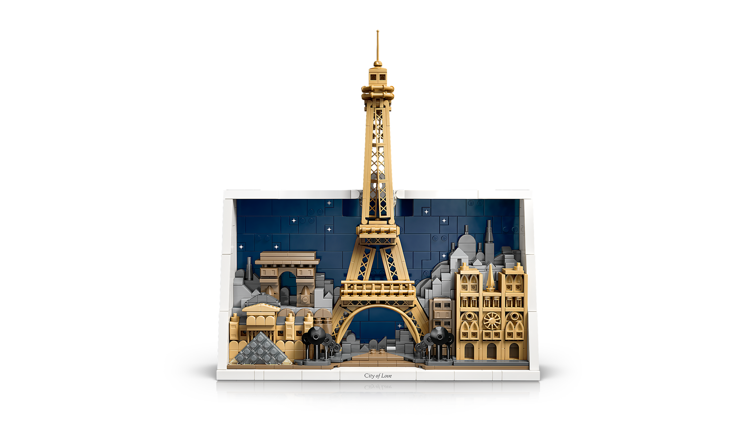 ENTDECKE PARIS MIT ALL SEINEN DETAILS: LEGO® Paris – Stadt der Liebe (21064) stellt 4 legendäre Pariser Wahrzeichen vor einer Stadtkulisse und einem Sternenhimmel dar. Das „Gemälde“ wird von weißen LEGO Steinen umrahmt