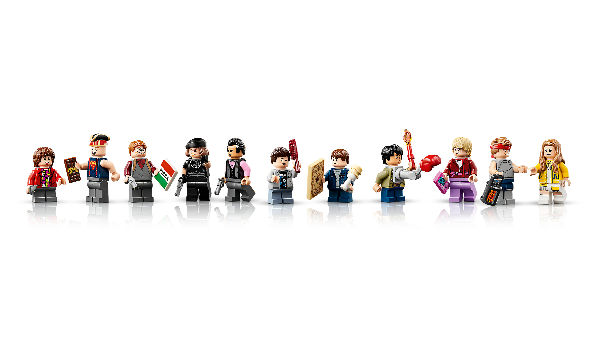 • 12 LEGO® Minifiguren: Unter anderem sind Mike „Mikey“ Walsh, Richard „Data“ Wang, Clark „Mouth“ Devereaux, Lawrence „Chunk“ Cohen, Mama Fratelli, Andrea „Andy“ Carmichael und der Einäugige Willie als Minifiguren enthalten