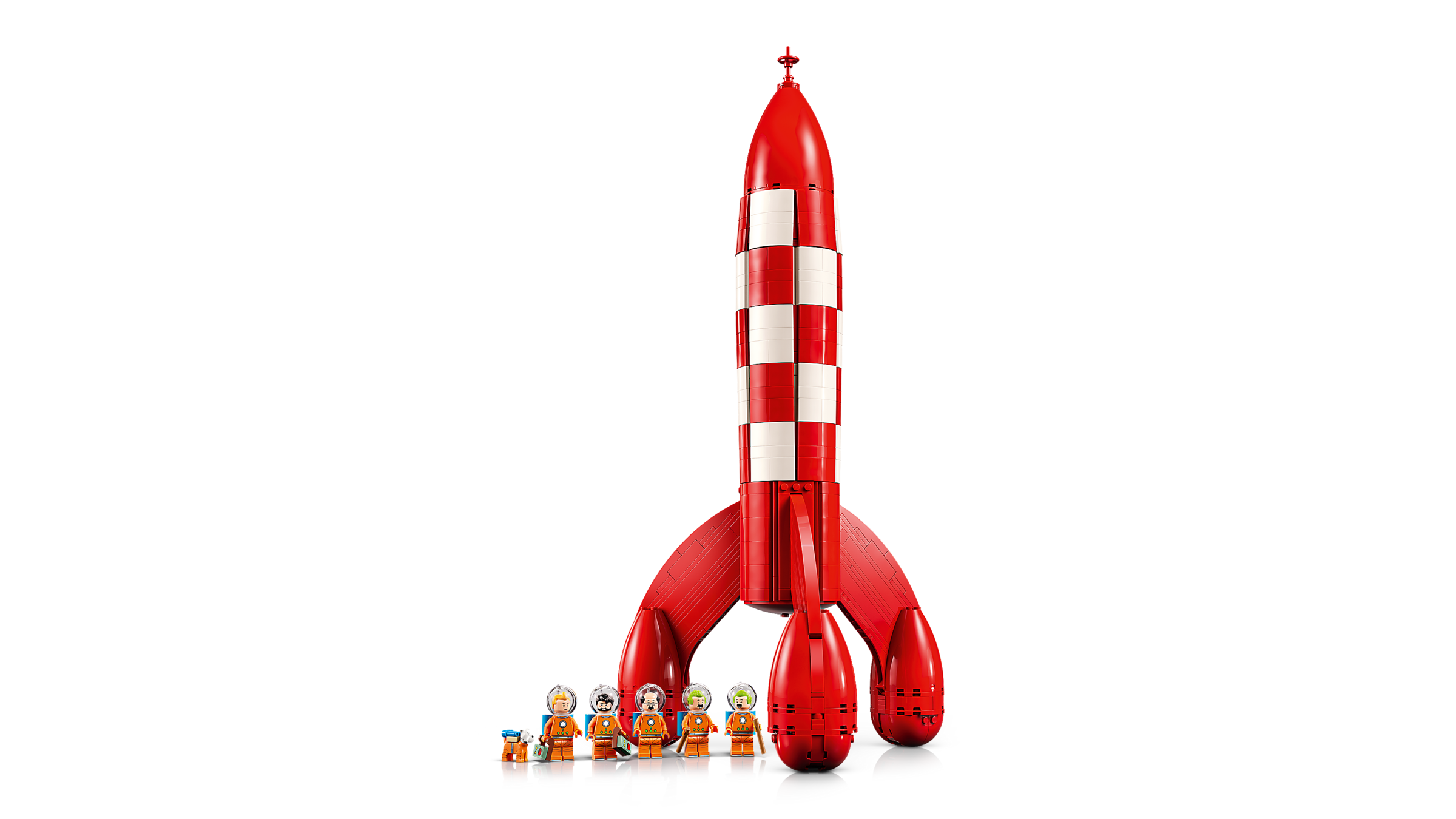 6 TINTIN® MINIFIGUREN: Die LEGO® Minifiguren Tintin®, Captain Haddock®, Thomson and Thompson® sowie Professor Calculus® tragen Raumanzüge, Helme und Sauerstoffflaschen. Auch die Figur Snowy® darf nicht fehlen