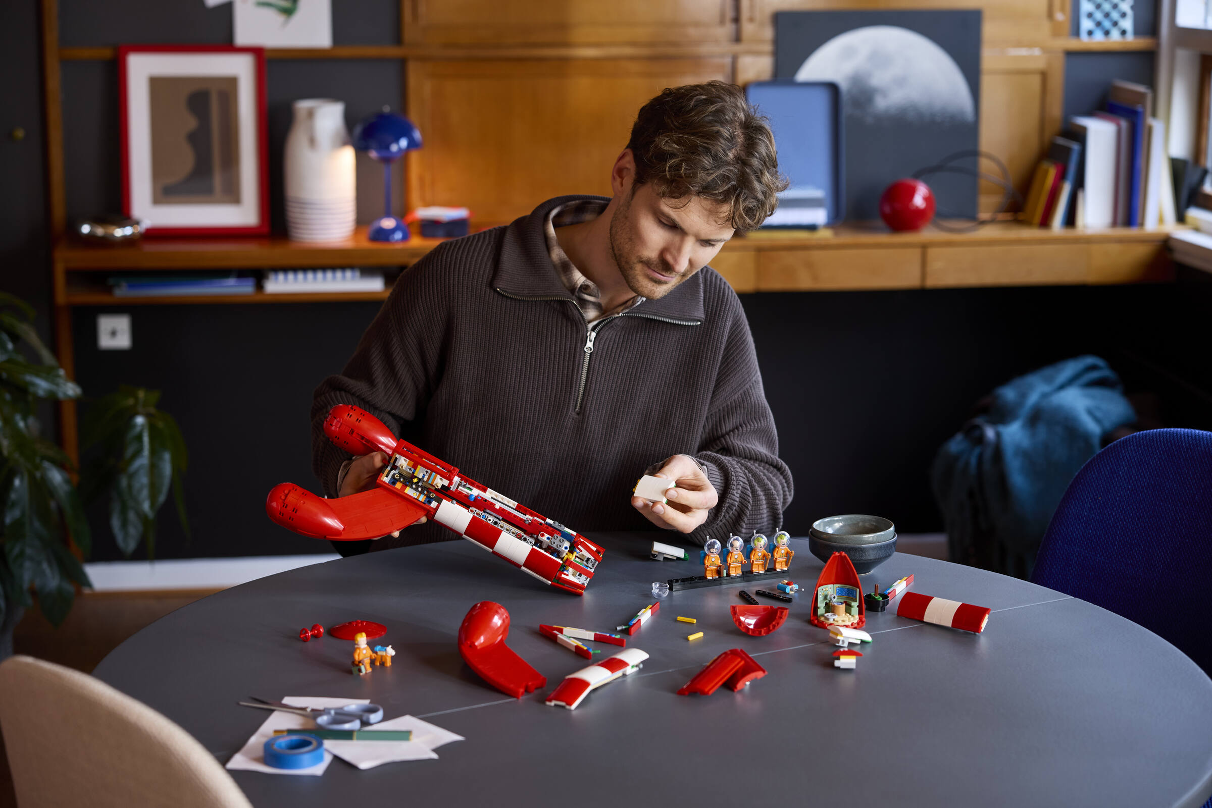 BAUPROJEKT FÜR ERWACHSENE: Dieses LEGO® Bauset bietet nostalgischen erwachsenen Fans der Tintin® Comics ein ebenso fesselndes wie kreatives Bauprojekt und lässt sie eine Raumfahrt-Zimmerdeko erschaffen