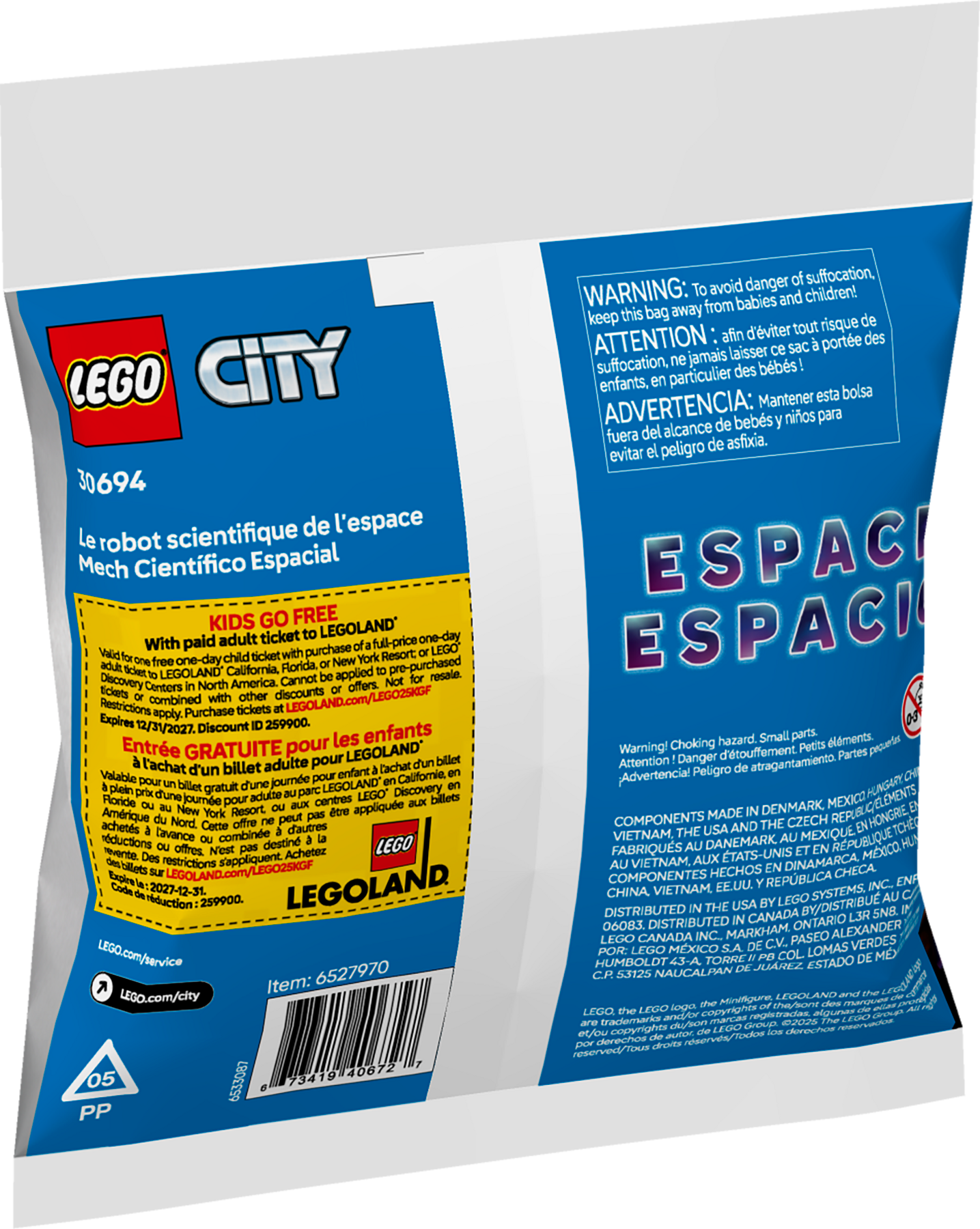 Überrasche einen jungen Weltraumfan mit diesem futuristischen LEGO® City Weltraumforscher-Mech. Neben der Actionfigur mit Klauen und großen Füßen zum Durchschreiten ferner Planeten beinhaltet das Set auch eine Astronaut-Minifigur. Anleitung rebrickable.com Logo Rebrickable bricklink.com Logo Bricklink brickset.com Logo Brickset