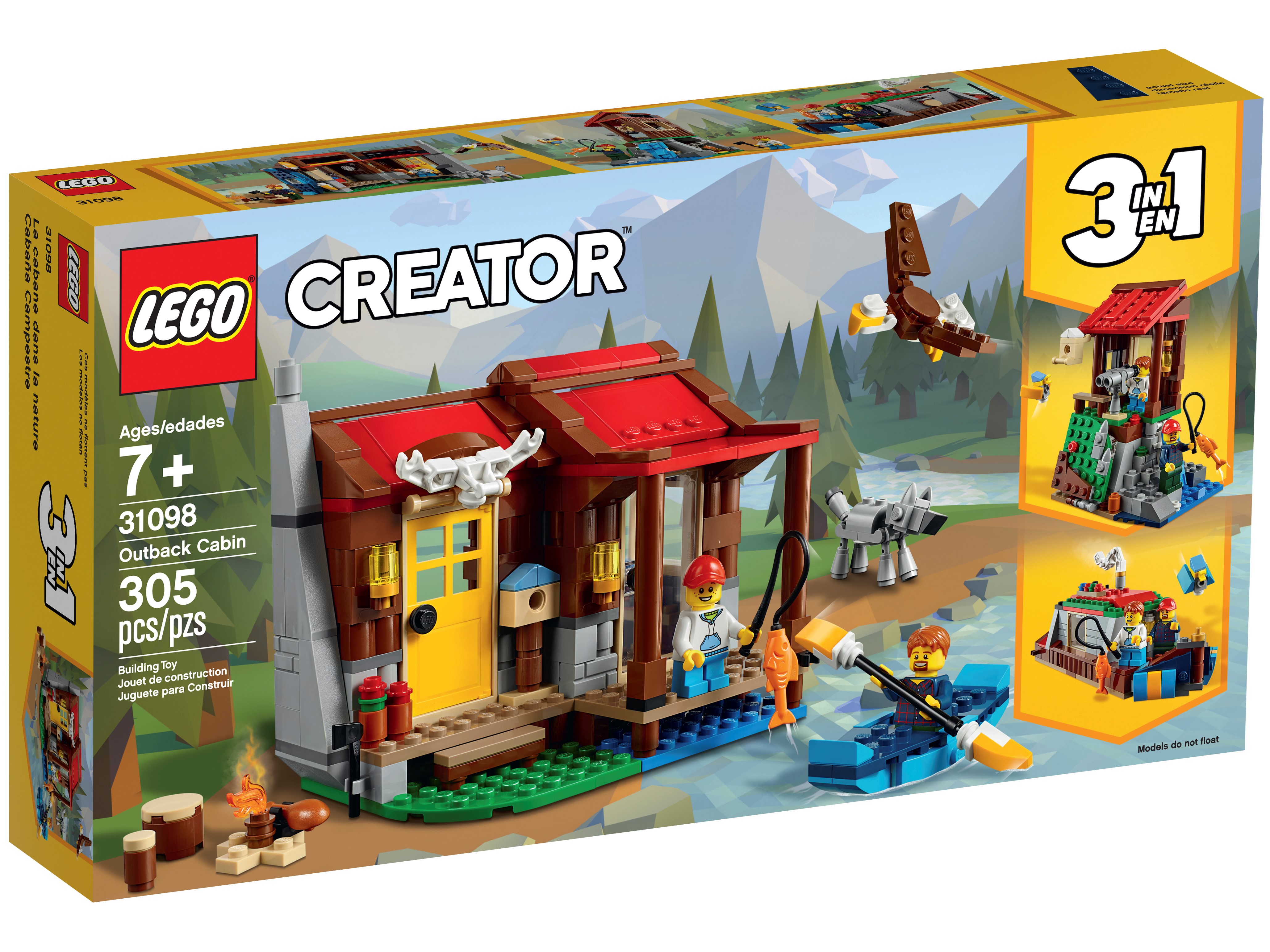 Dieses LEGO® Creator 3-in-1-Set bietet 3 verschiedene Baumöglichkeiten: Baue die Outback-Hütte, die Vogelwarte mit geheimem Versteck oder ein Kanalboot mit einer gut ausgestatteten Kombüse.