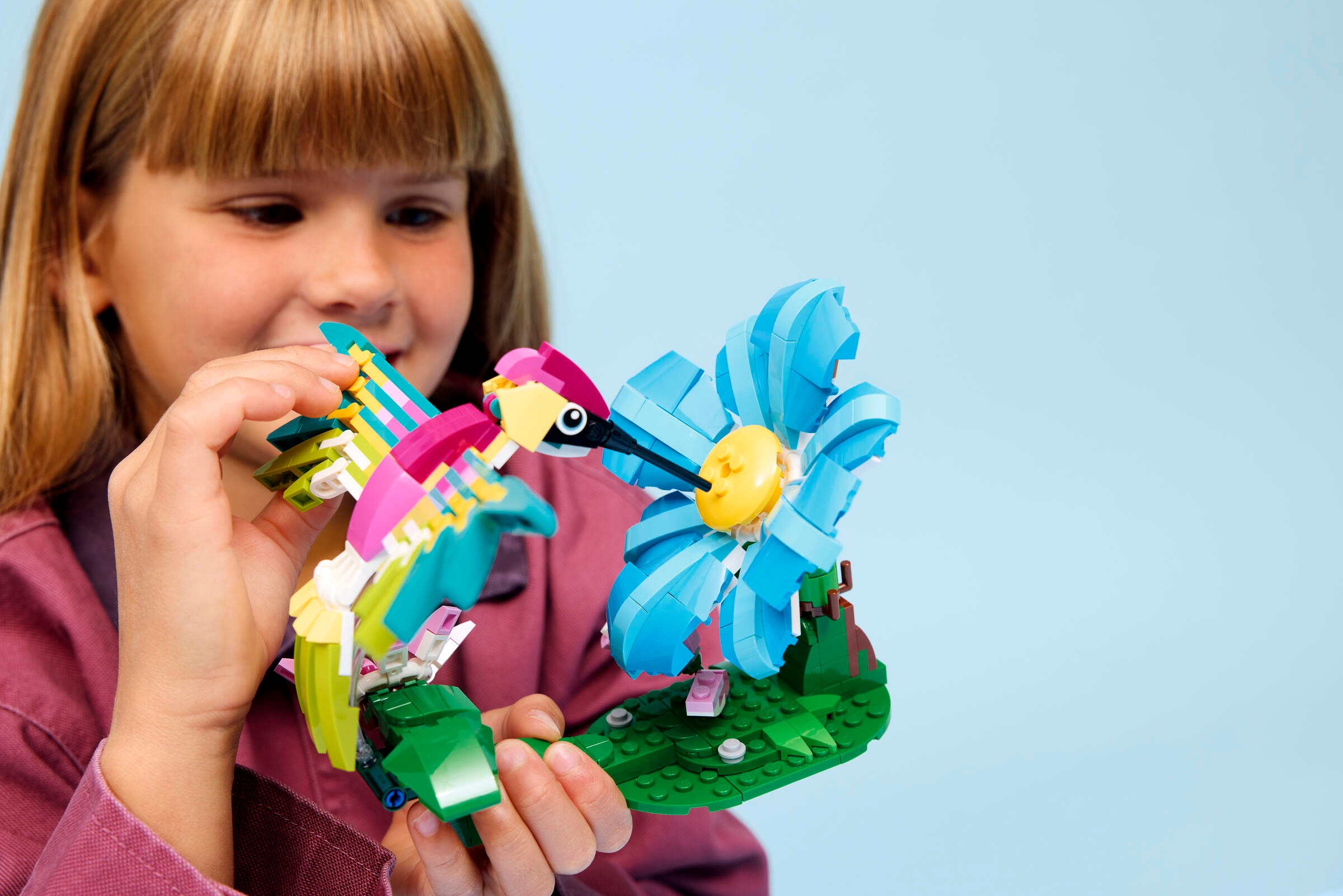 • BEWEGLICHE LEGO® TIERE: Der Kolibri ist in einer dynamischen Flugpose dargestellt. Er kann Hals, Flügel und Schwanz bewegen. Und der Schmetterling hat bewegliche Flügel