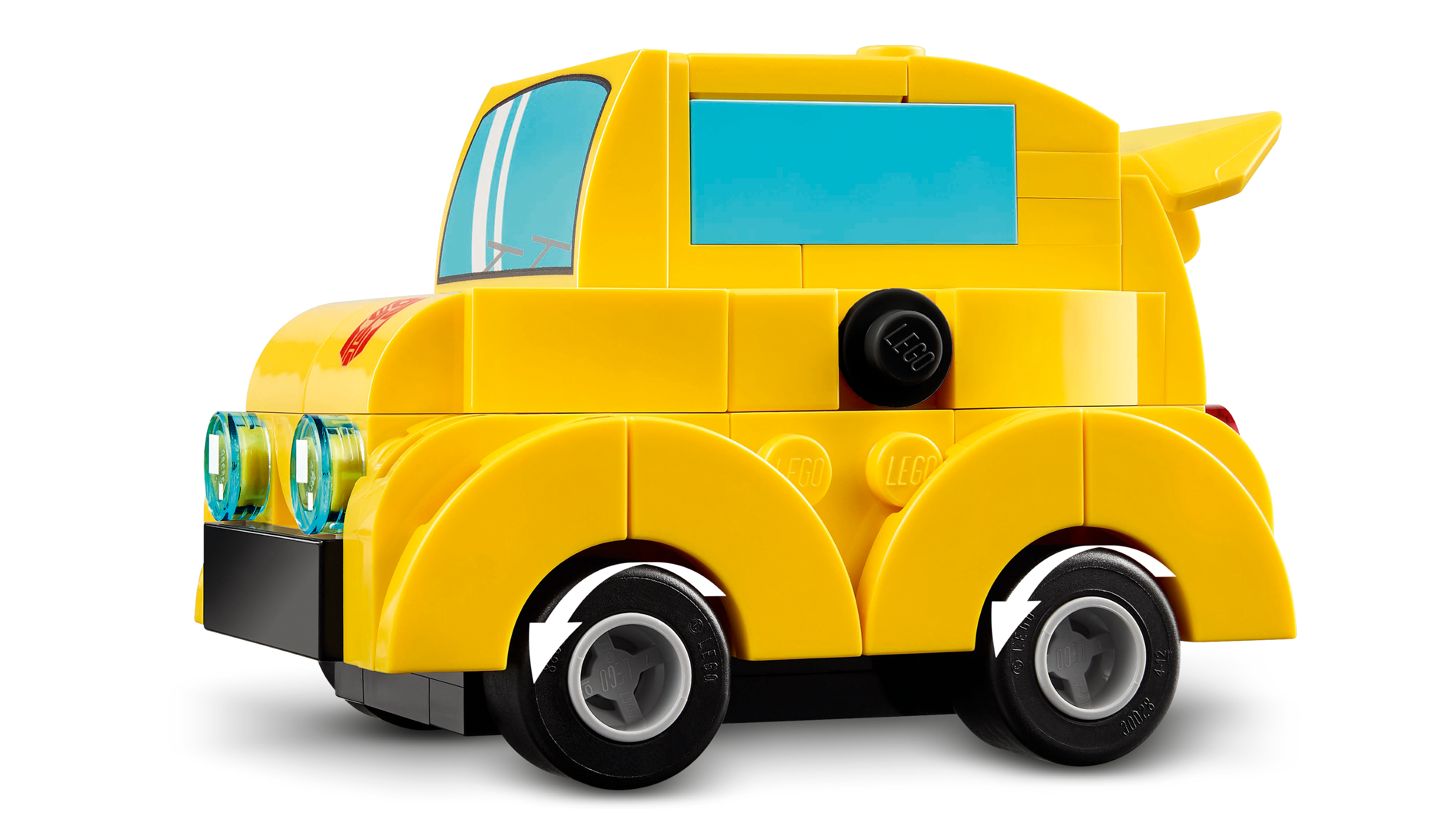 Bausets mit 2 BrickHeadz™ Modellen: Beide Figuren strotzen nur so vor Zierelementen. Das Transformers-Fahrzeug hat drehende Räder, um noch mehr Spielmöglichkeiten zu bieten