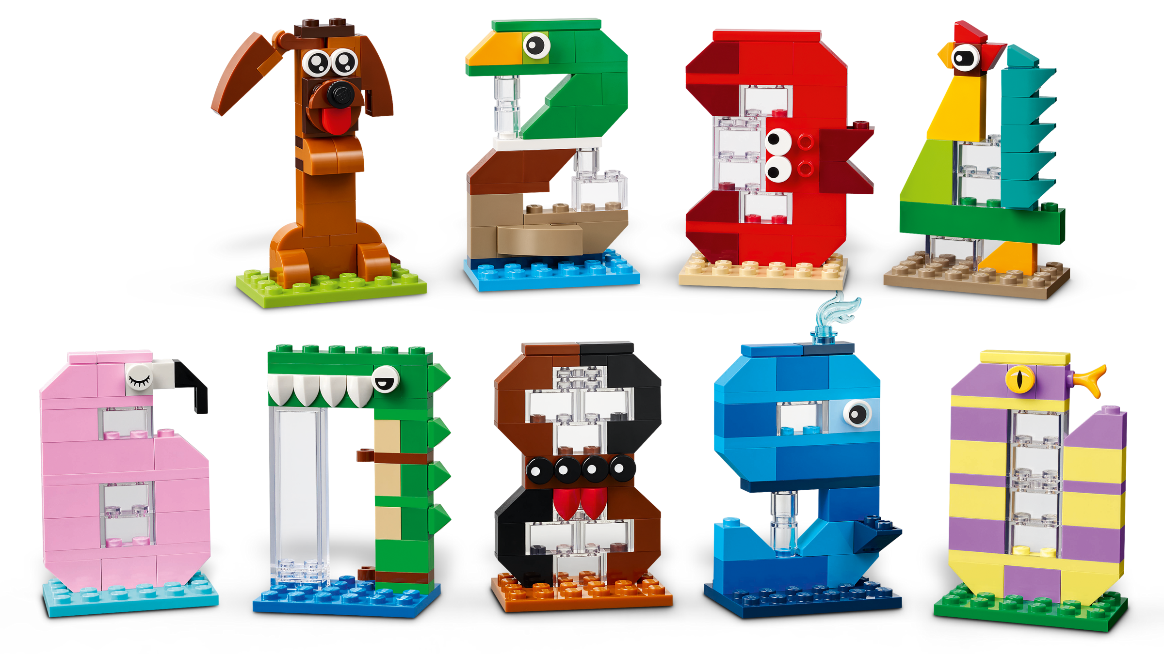 Tierfreunde werden große Freude daran haben, die 10 Zahlen zu bauen und die niedlichen Tiere zu erkunden, denen diese Modelle nachempfunden sind. Die Figuren stellen einen Hund, eine Ente, eine Krabbe, einen Hahn, einen Tukan, einen Flamingo, ein Krokodil, eine Spinne, einen Wal und eine Schlange dar. Kinder können diese Lernspielzeuge allein oder zusammen mit Freunden oder Geschwistern bauen. Die fertigen Zahlen sind bunte Tiere zum Ausstellen, mit denen man viele Geburtstage feiern kann. Mach jedes Jahr ein unvergessliches Foto deines jungen Baumeisters und schau zu, wie dein kleiner Schatz wächst!
