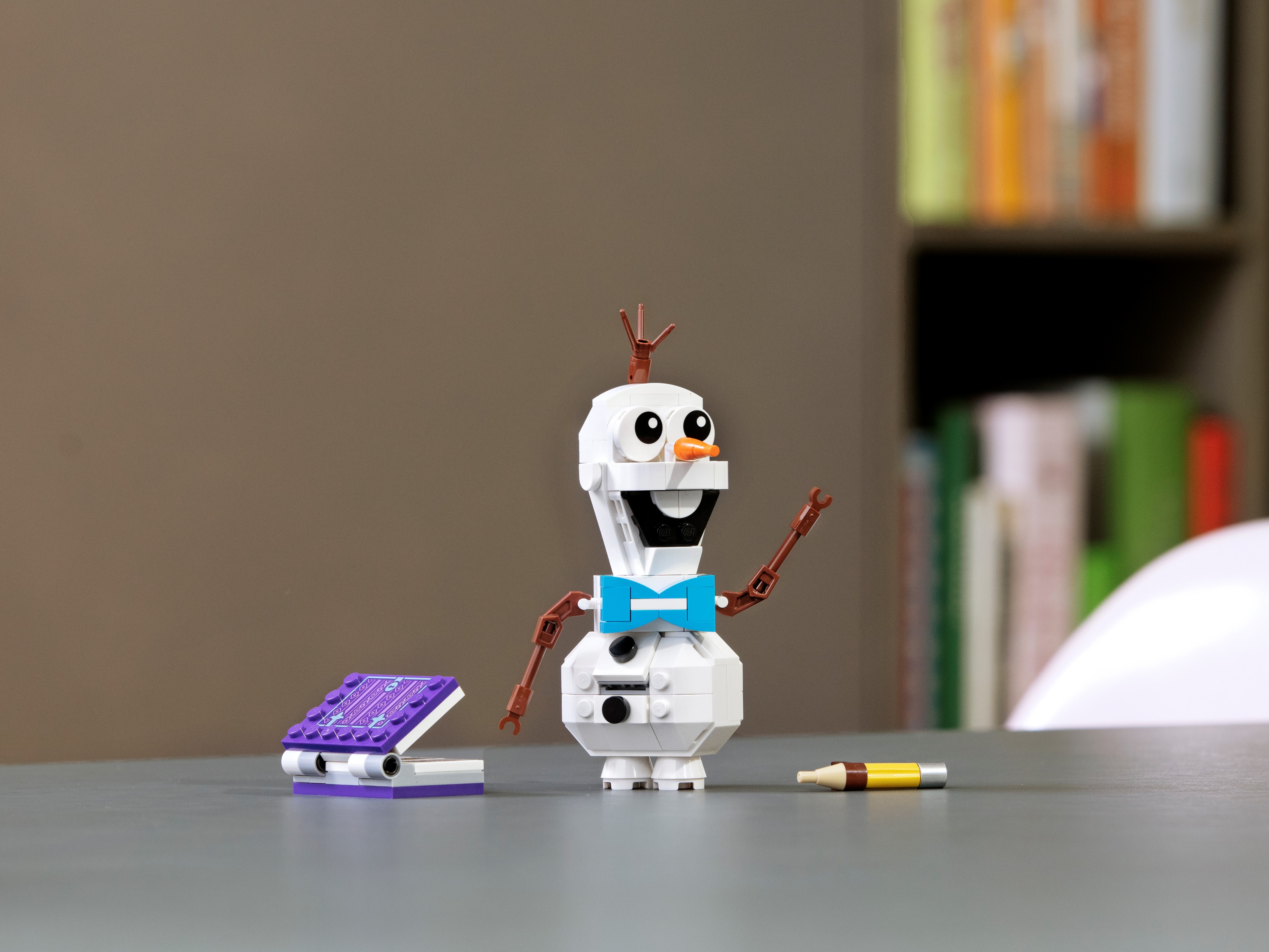 Die LEGO® l Disney Figur „Olaf" (41169) bietet jede Menge Spaß beim Bauen und Spielen. Die Figur wird aus LEGO Steinen zusammengebaut und seine Arme und sein Hals können ganz nach Belieben bewegt werden. Für noch mehr Spaß gibt es tolles Zubehör. Fans von „Die Eiskönigin 2“ können dem liebenswerten Schneemann seine blaue Fliege anlegen oder ihm dabei helfen, seinen Stift zu halten, damit er in seine Zeitschrift schreiben und die verschiedenen Wunder des Lebens entdecken kann. Wenn er Zuhause oder im Büro ausgestellt wird, verleiht der baubare Olaf aus Disneys „Die Eiskönigin 2“ sogar dem kältesten Tag etwas Sonnenschein, was ihn zu einem tollen Geschenk für alle Fans macht.