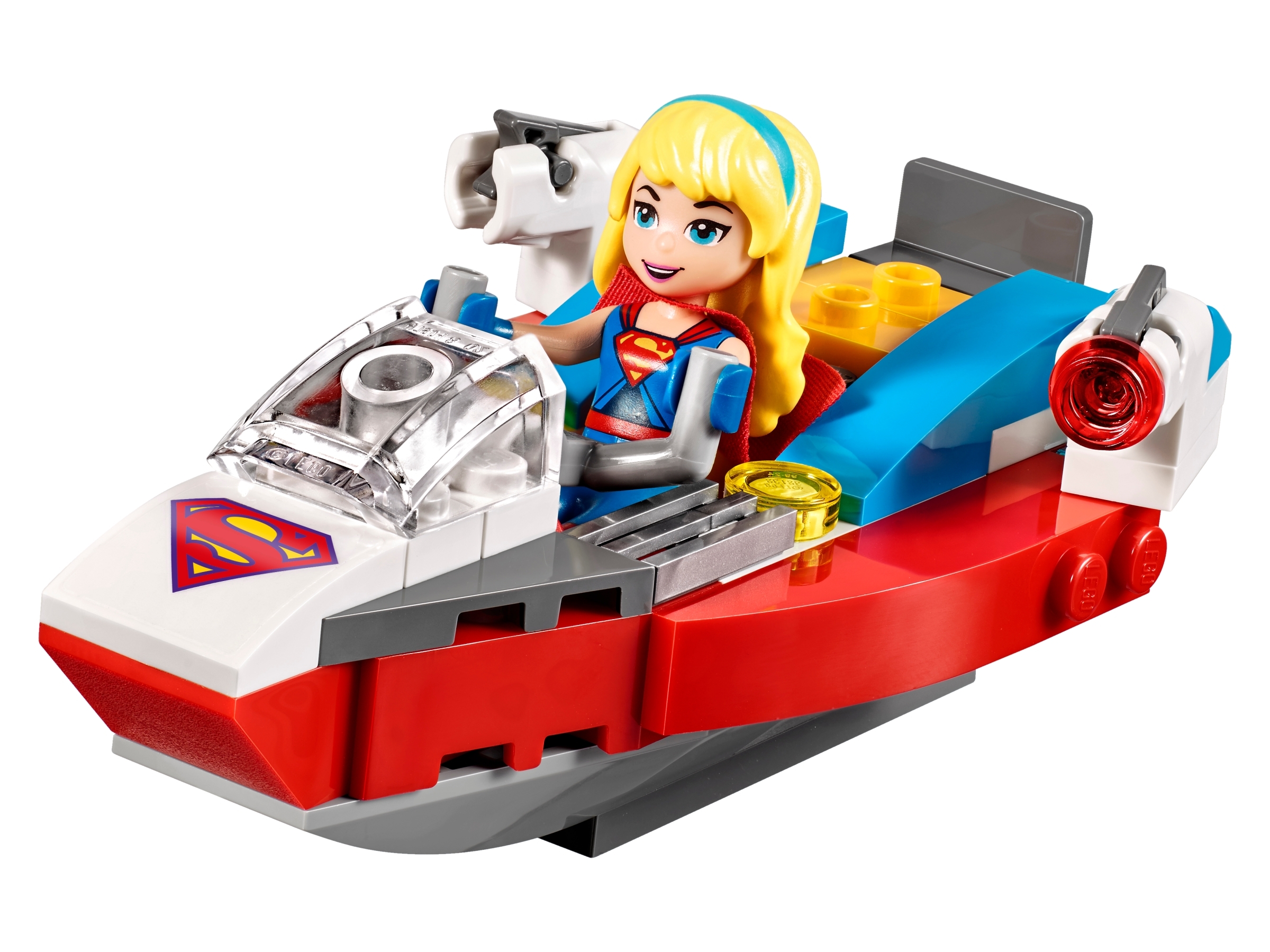 Ebenfalls enthalten sind Lena Luthors Fluchtboot mit einer Kette und einer Kiste für die Kryptomites sowie Supergirls Jetboot mit Doppelshootern und Platz für Krypto™.