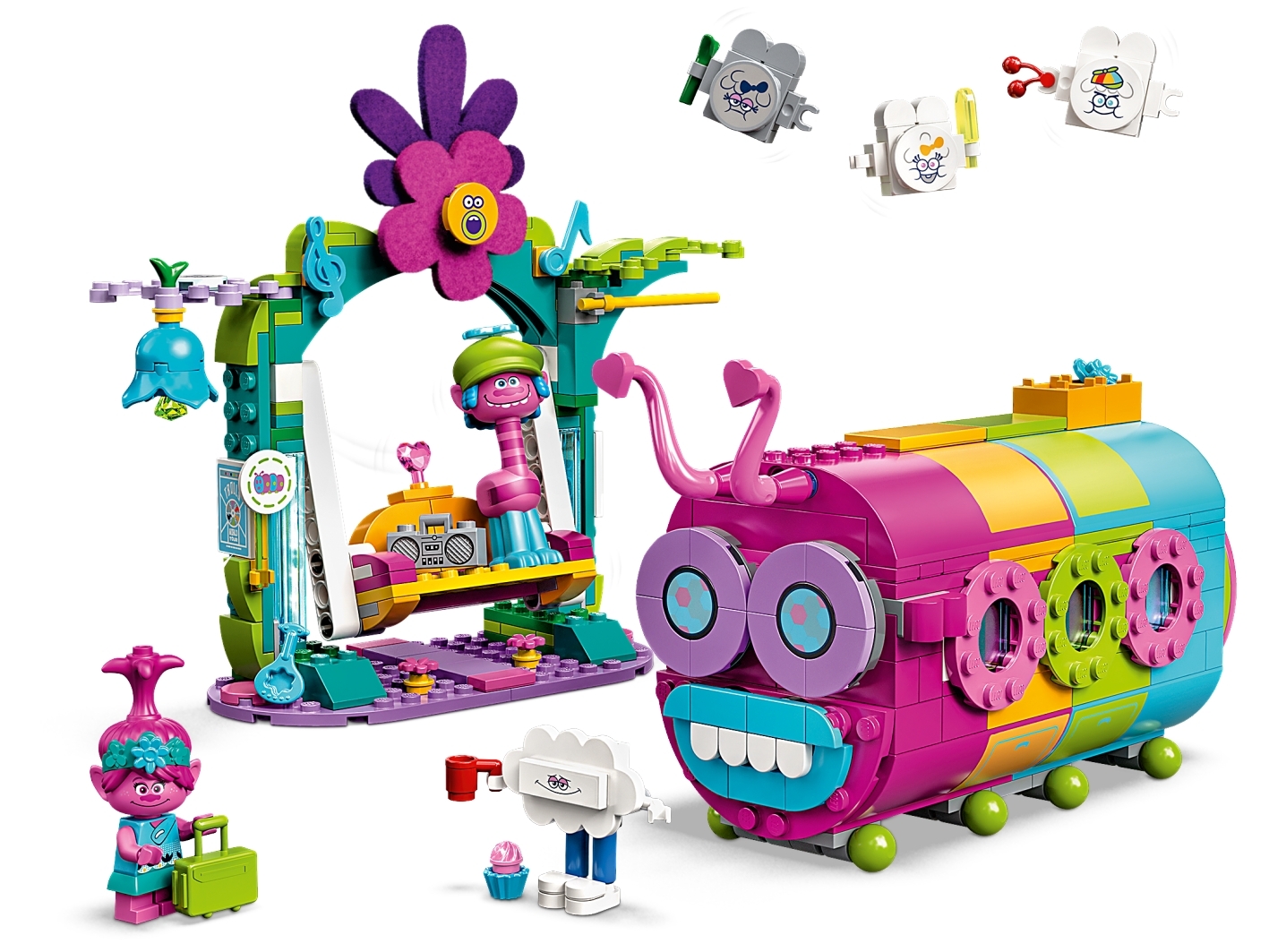 • Die LEGO® TROLLS WORLD TOUR Reihe enthält Spielzeuge zum Sammeln, die es Trolls Fans ermöglichen, ihre Lieblingsszenen nachzubauen, mit den Trolls-Charakteren zu spielen und die Geschichten aus dem Film TROLLS WORLD TOUR nachzuspielen.