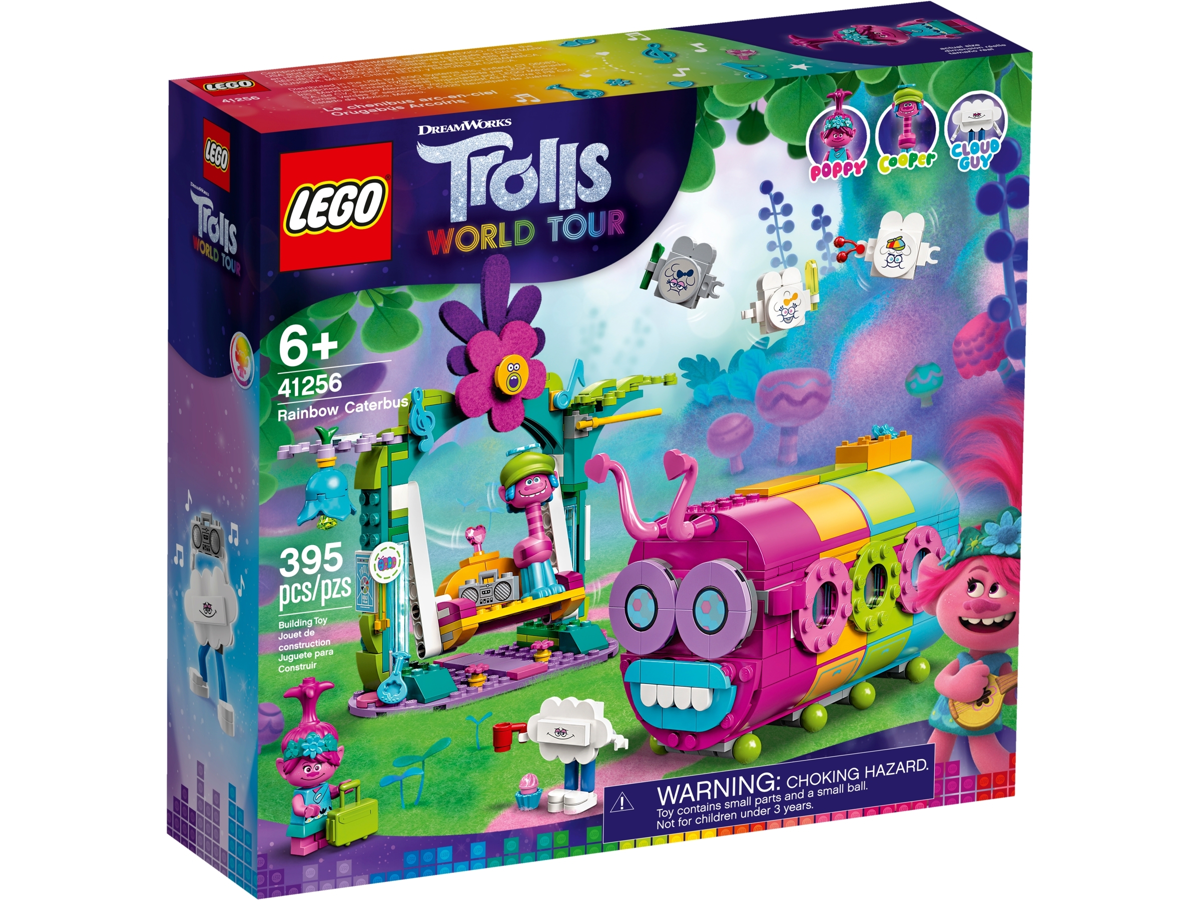 Der LEGO® TROLLS WORLD TOUR „Regenbogen-Raupenbus“ ist gerade angekommen! Trolls Fans werden sich bestens amüsieren, wenn sie Poppy, Cooper, Herrn Wolke (und 3 Wolkenkinder) auf einen Ausflug in diesem Raupenbus-Spielset zum Film TROLLS WORLD TOUR begleiten. Sie können all die coolen Elemente aus diesem detailreichen Set bauen und dann ihre Lieblingsszenen aus dem Film nachstellen. In diesem detailreichen Set ist richtig viel los. Schon das Warten an der Spielzeug-Bushaltestelle ist ein Riesenspaß. Wenn der Raupenbus dann ankommt, können die Kinder ihre Trolls-Figuren hineinstecken, um sie mitfahren zu lassen. Poppy und Cooper als Trolls-Minifiguren sowie 4 Charaktere aus LEGO Steinen – Herr Wolke und seine drei Wolkenkinder – bieten unzählige kreative Spielmöglichkeiten. Wer nach Trolls-Spielzeug für Kinder sucht, die Poppy und ihre Freunde lieben, liegt mit den LEGO® TROLLS WORLD TOUR Bausets zum Sammeln genau richtig.