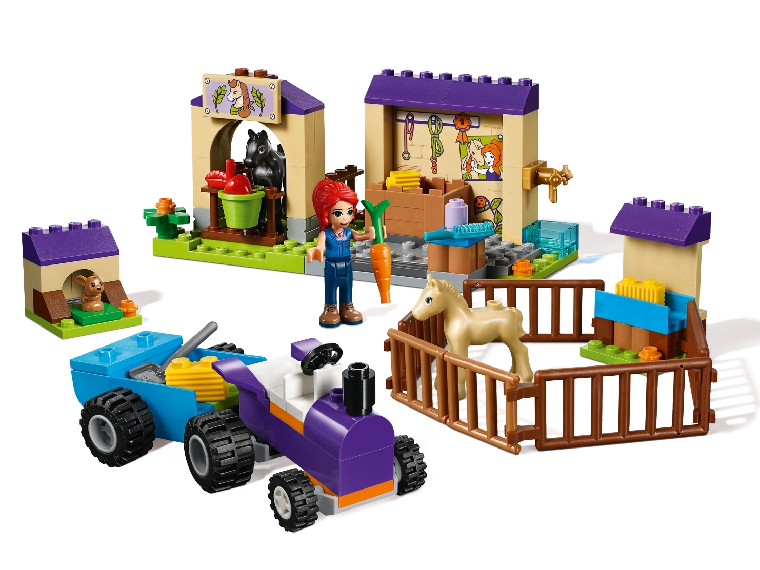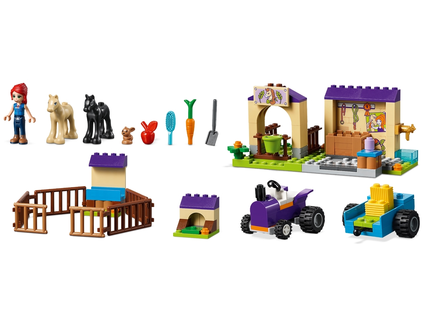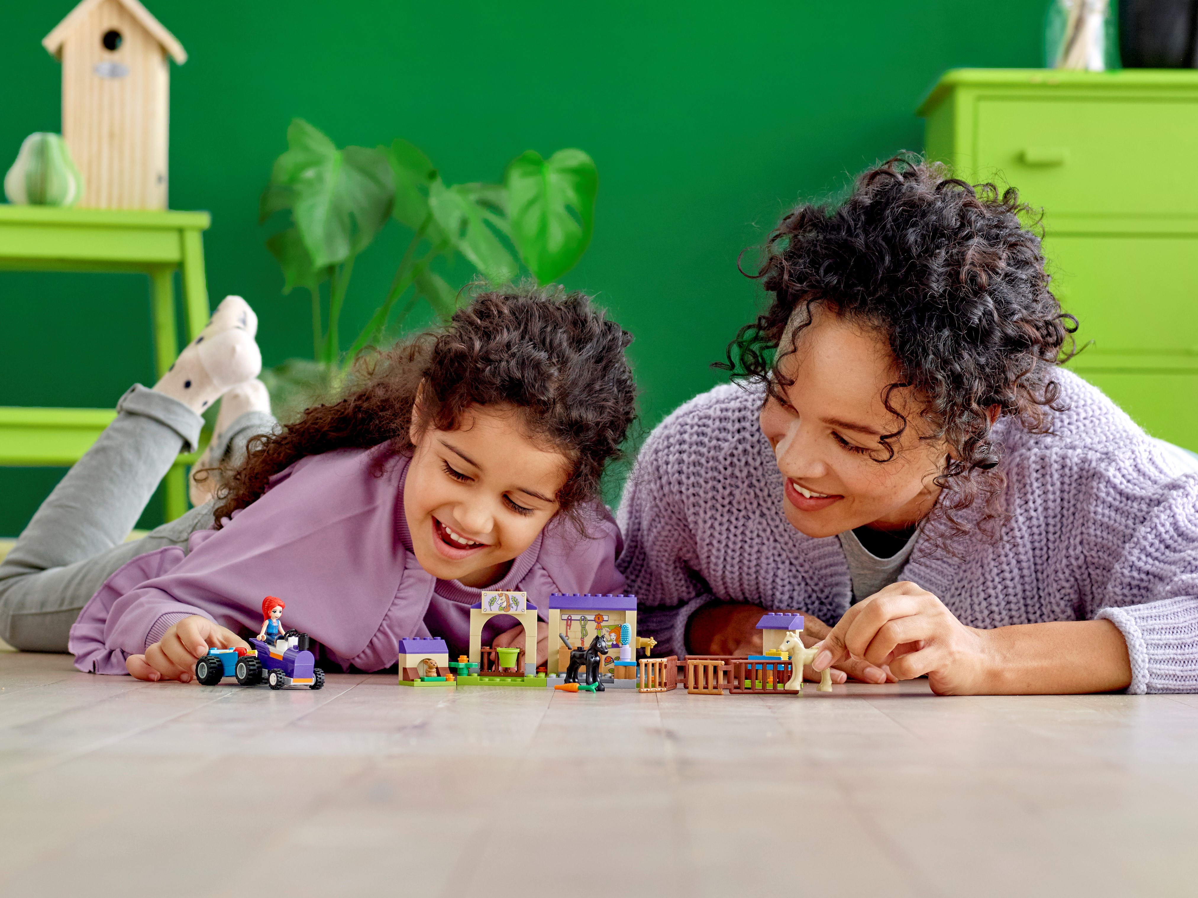 Kinder können mit diesem LEGO® Friends 4+ Set „Mias Fohlenstall“ (41361) entdecken, welche Aufgaben am Stall anfallen. Dieses LEGO 4+ Fohlenstall-Set wurde insbesondere für Kindergarten- und Grundschulkinder entwickelt. Es umfasst Tierfiguren für lustige Rollenspiele und einen Traktor für LEGO Friends Mia, mit dem sie herumfahren kann. Auch eine Sattelkammer und ein Paddock sind enthalten. Durch das spezielle Starter Bauelement können selbst Bauanfänger ganz allein Gebäude, Fahrzeuge und vieles mehr bauen. Die enthaltene leicht verständliche Bau- und Spielanleitung wird dem Kind zudem helfen, die Bauschritte zu verstehen, sowie seine Fantasie anregen und sein Selbstbewusstsein steigern, sodass ihm mühelos der ideale Einstieg in die Welt des Bauens mit LEGO Steinen der bekannten LEGO Friends Reihe gelingt.