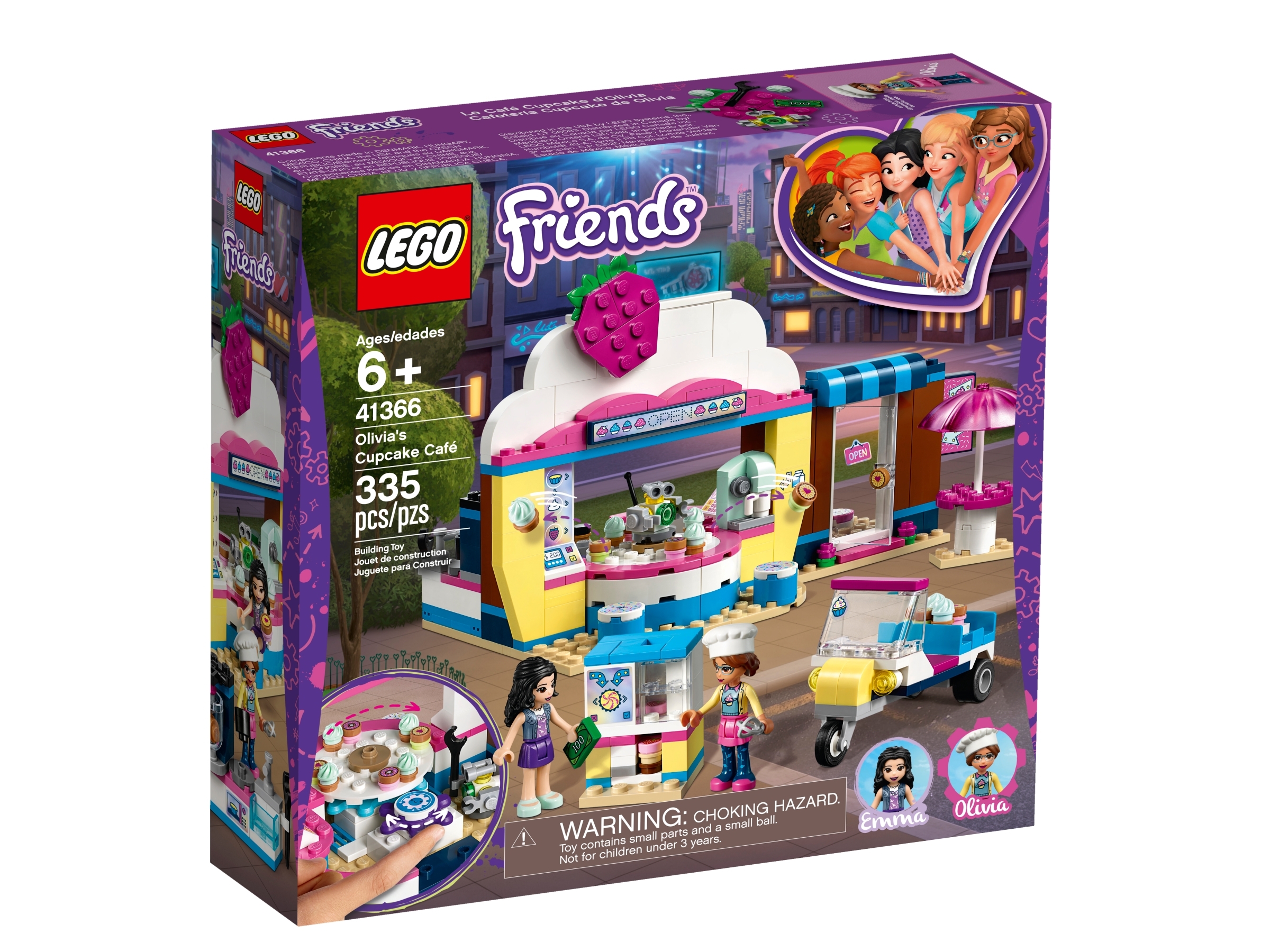 Das LEGO® Friends Set „Olivias Cupcake-Café“ (41366) kombiniert Technologie und Lebensmittel und bietet jede Menge supercoole Ausrüstung für fantasievolle Rollenspiele. Das Cupcake-Café hat wie die Sushi-Restaurants in Heartlake City ein Förderband, das sich mithilfe von Zahnrädern bewegt. Auch ein cooler Cupcake-Automat, Essensbereiche drinnen und draußen und eine Küche mit einem Backofen, einer Spüle und Backutensilien werden geboten. Für mehr kreatives Spielen umfasst dieses Café-Spielset darüber hinaus einen kleinen Roller, mit dem die Cupcakes in ganz Heartlake City verkauft werden können. Das Set enthält 2 Spielfiguren: Olivia und Emma sowie eine Roboterfigur.