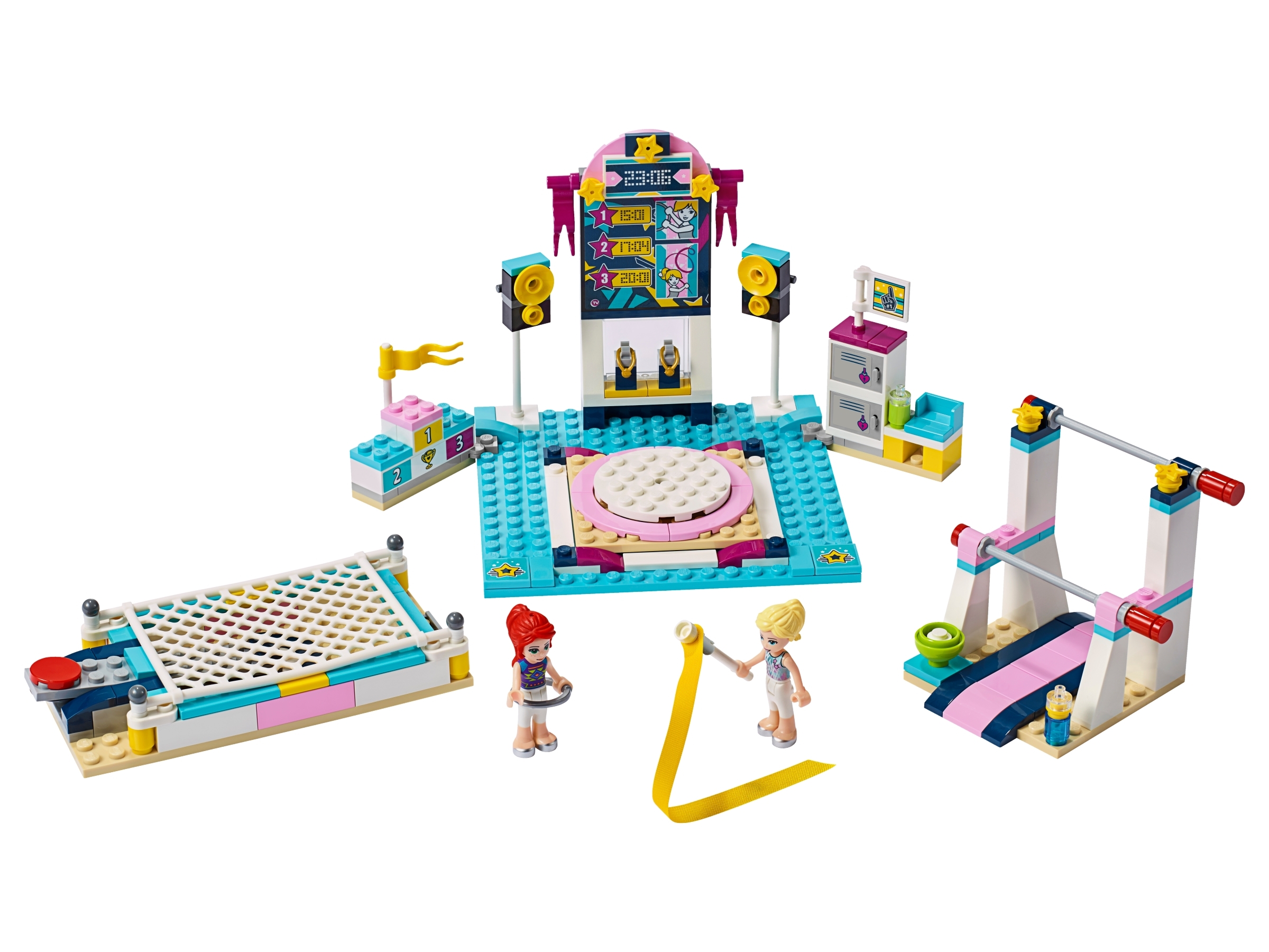 Mit dem LEGO® Friends Set „Stephanies Gymnastik-Show“ (41372) ist Wettstreitzeit. Kinder bekommen mit der vielseitigen Turnhalle endlosen Spaß geschenkt. Das kreative Bauset umfasst 3 Turngeräte: das Trampolin, den Barren und den Turnboden. Jedes kann auf der Hauptbühne befestigt werden, wenn Vorführzeit ist. Das Trampolin weist eine coole Sprungfunktion auf – drücke auf den Knopf, um die Mädchen in die Luft zu schleudern. Am Barren können sie noch mehr Luftkunststücke vorführen: Jeder Holm lässt sich drehen und die Turnerinnen herumwirbeln. Für jede Übung der Mädchen am Boden gibt es ein anderes Zubehör – ein Schwungband und ein Reifen. Durch die drehbare Plattform können die Zuschauer die Wettstreitteilnehmer aus jeder Richtung gut sehen. Nach dem Vorführen können die Teilnehmer zurück in den Umkleideraum gehen, Energie tanken und auf die Ergebnisse warten, bevor sie ihre Medaillen auf dem Siegerpodest entgegennehmen. Mit Instructions PLUS wird jedem LEGO Baumeister ein tolles Bauerlebnis geboten. Diese digitalen Bauanleitungen gibt es jetzt in der LEGO Life App für Smartphones und Tablets. Diese benutzerfreundlichen und intuitiven digitalen Bauanleitungen ermöglichen es den Baumeistern, ihr Modell heranzuzoomen, zu drehen und mithilfe des speziellen Geistermodus zu visualisieren. Instructions PLUS eignet sich zudem perfekt für jüngere Baumeister, da es sie durch den Bauvorgang leitet und ein stärkeres Gefühl der Unabhängigkeit sowie tolle Erfolgserlebnisse bietet. Das Konstruktionsset umfasst 2 Spielfiguren und ermöglicht stundenlanges fantasievolles Spielen.