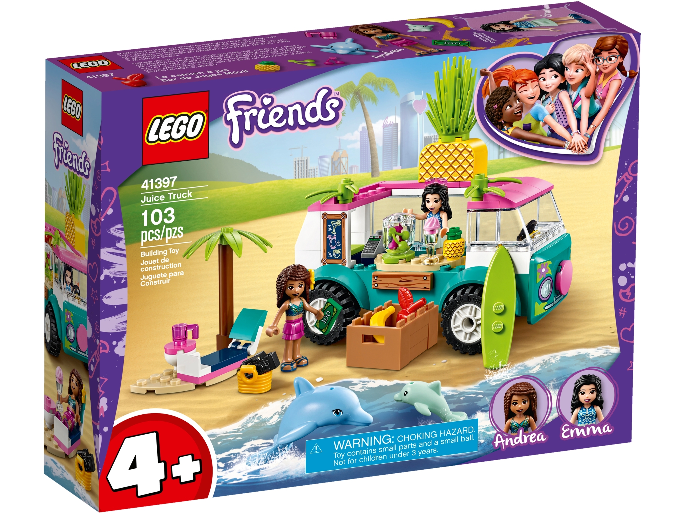 Diese Spielzeug-Strandbar benötigt keine Batterien. Als Antrieb reicht die Begeisterung der Kinder, endlich losfahren und mit der LEGO Friends Heldin Emma Smoothies in Heartlake City verkaufen zu können!