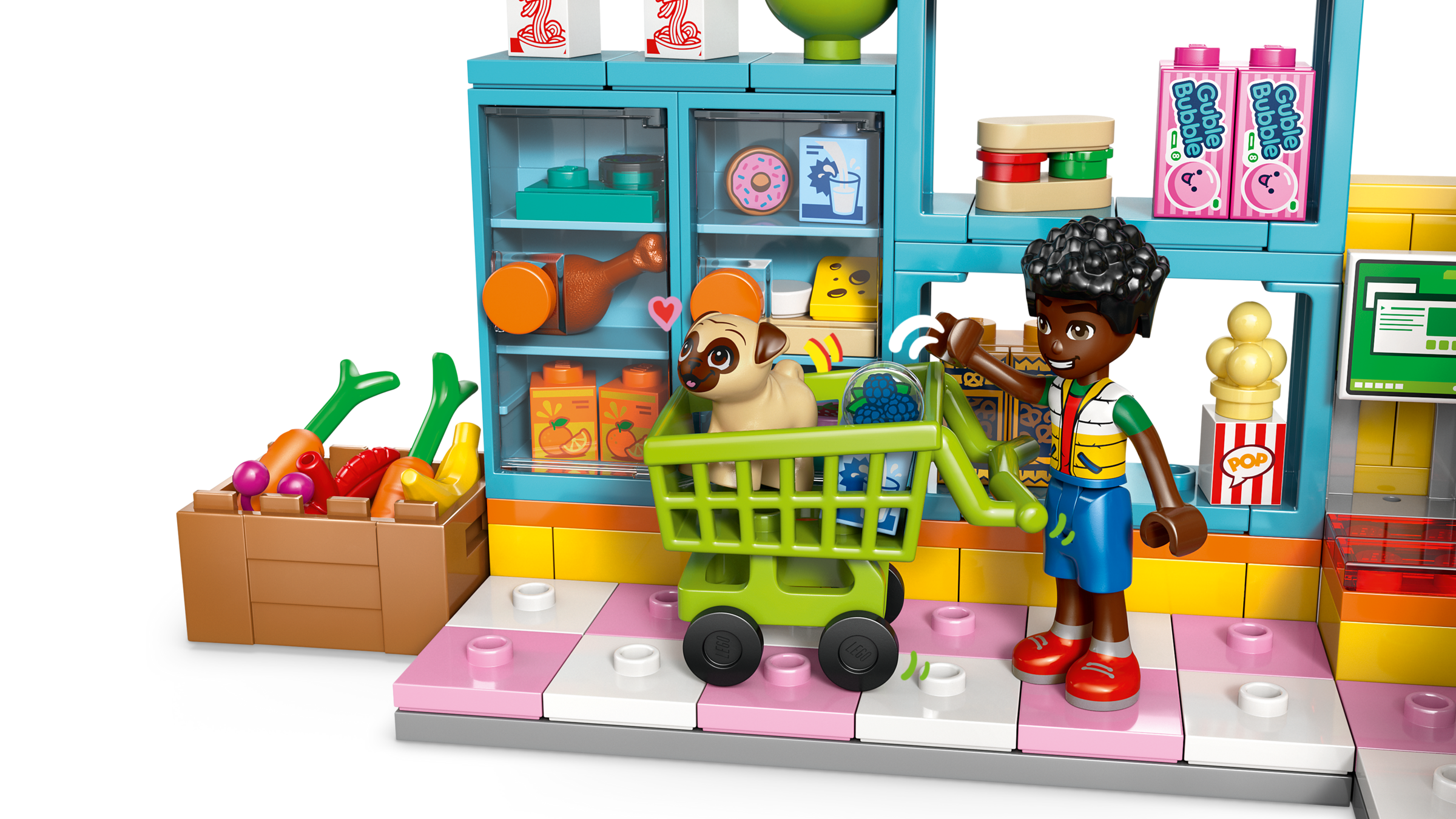 EINKAUFSROLLENSPIELE: Der LEGO® Friends Heartlake City Mini-Markt(42680) lässt Kinder so tun, als würden sie zum Mini-Markt gehen, die Regale auffüllen, einkaufen, für ihren Einkauf bezahlen und Leergut abgeben