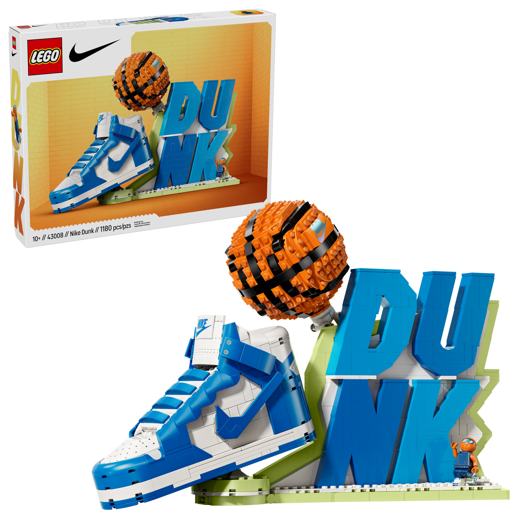 Dieses Modell zum Sammeln und Anpassen zeigt die lässige Einstellung echter Basketballer. Das Set hat das Zeug dazu, der angesagteste neue Sportschuh der Saison zu werden. Das Set besteht aus einem Nike Dunk, einem drehbaren Spielzeug-Basketball aus LEGO Steinen und dem legendären Schriftzug „Dunk“. In dem Modell verbergen sich Geheimfächer, in denen du Meisterschaftsringe oder andere kleine Schätze sicher aufbewahren kannst, sowie zusätzliche Schnürsenkel für andere Farbkombinationen. Darüber hinaus liegt dem Nike Dunk der Superfan B’Ball Head bei – eine exklusive Minifigur, die ein cooles Nike-Outfit und Nike Dunks trägt, die zu dem legendären Modell passen.