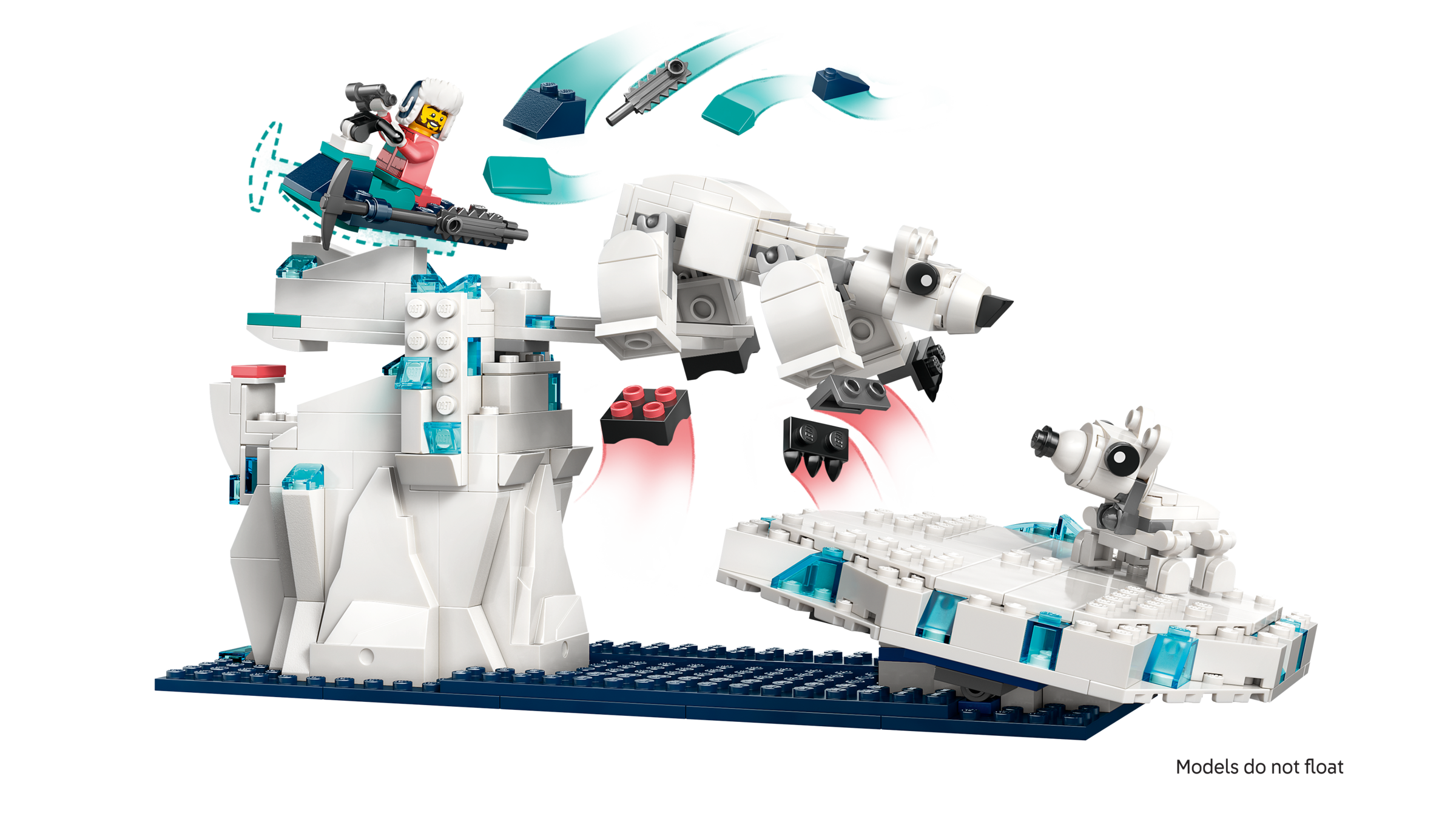 ABMESSUNGEN: Das Modell des „eisigen“ Hangs in der Arktis aus diesem 1.134-teiligen LEGO® Tierset ist 6 cm hoch, 19 cm breit und 8 cm tief