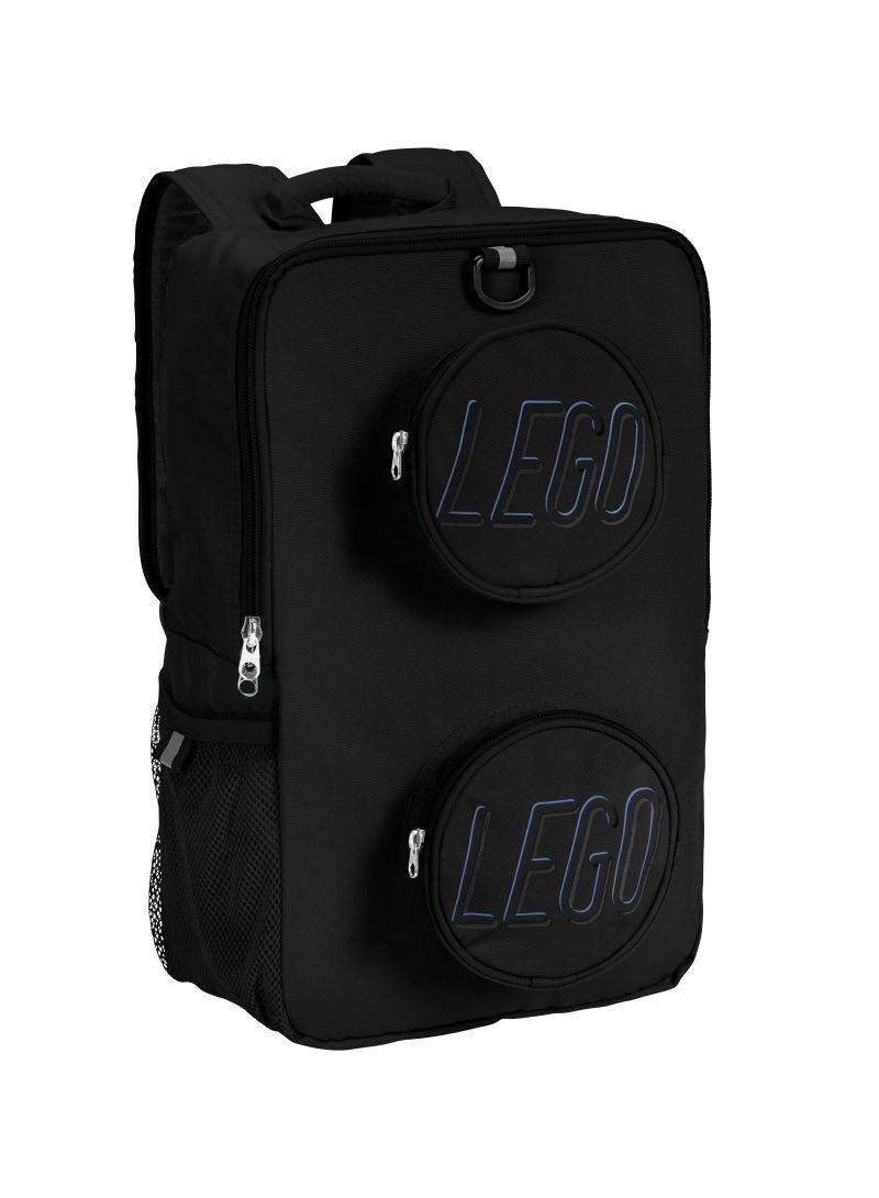 Benutze diesen umweltfreundlichen schwarzen LEGO® Stein-Rucksack (5005537), um deine Sachen bequem und stilvoll zu transportieren. Dieser strapazierfähige Rucksack ist aus hochwertigem Polyestermaterial gefertigt und besitzt das Design eines klassischen LEGO 1x2-Steins mit einem großen Hauptfach und 2 Taschen in den LEGO Noppen, die alle mit witzigen und besonders griffigen LEGO Stein-Zippern versehen sind. Dieser Rucksack lässt sich auch wunderbar mit unseren farblich passenden LEGO Stein-Brotzeittaschen kombinieren.