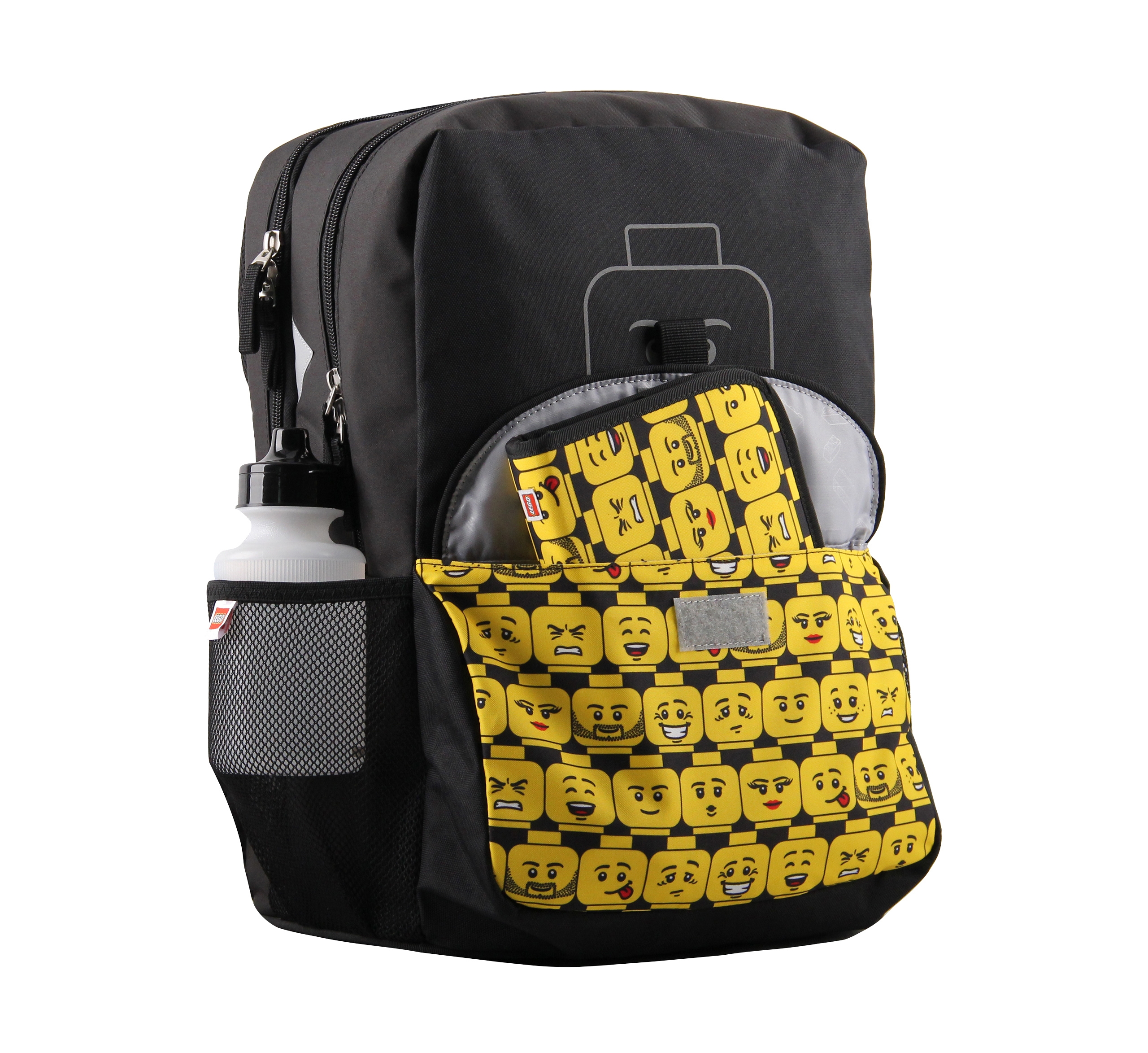 In diesem leichten, wasserabweisenden LEGO® Minifiguren-Belight-Rucksack (5005918) können Schulkinder alles mitnehmen, was sie brauchen. Der Rucksack mit dem Motiv mit Minifigurengesichtern sieht nicht nur gut aus, er ist mit seinen Fächern für Bücher, einen Laptop, Stifte und vieles mehr sowie den beiden Seitenfächern aus Netzstoff auch äußerst praktisch. Der Rucksack ist aus strapazierfähigem Polyester gefertigt, verfügt über bequeme, gepolsterte Schulter- und Brustriemen und für mehr Sicherheit über gut sichtbare Reflektoren.
