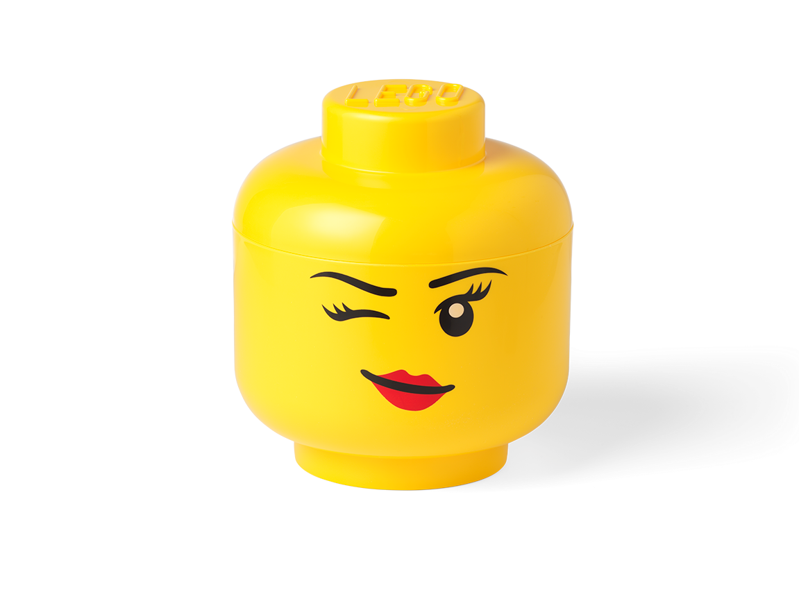 Witziger Behälter: Großer LEGO® Minifigur-Kopf mit abnehmbarem Deckel und frech zwinkerndem Gesicht.