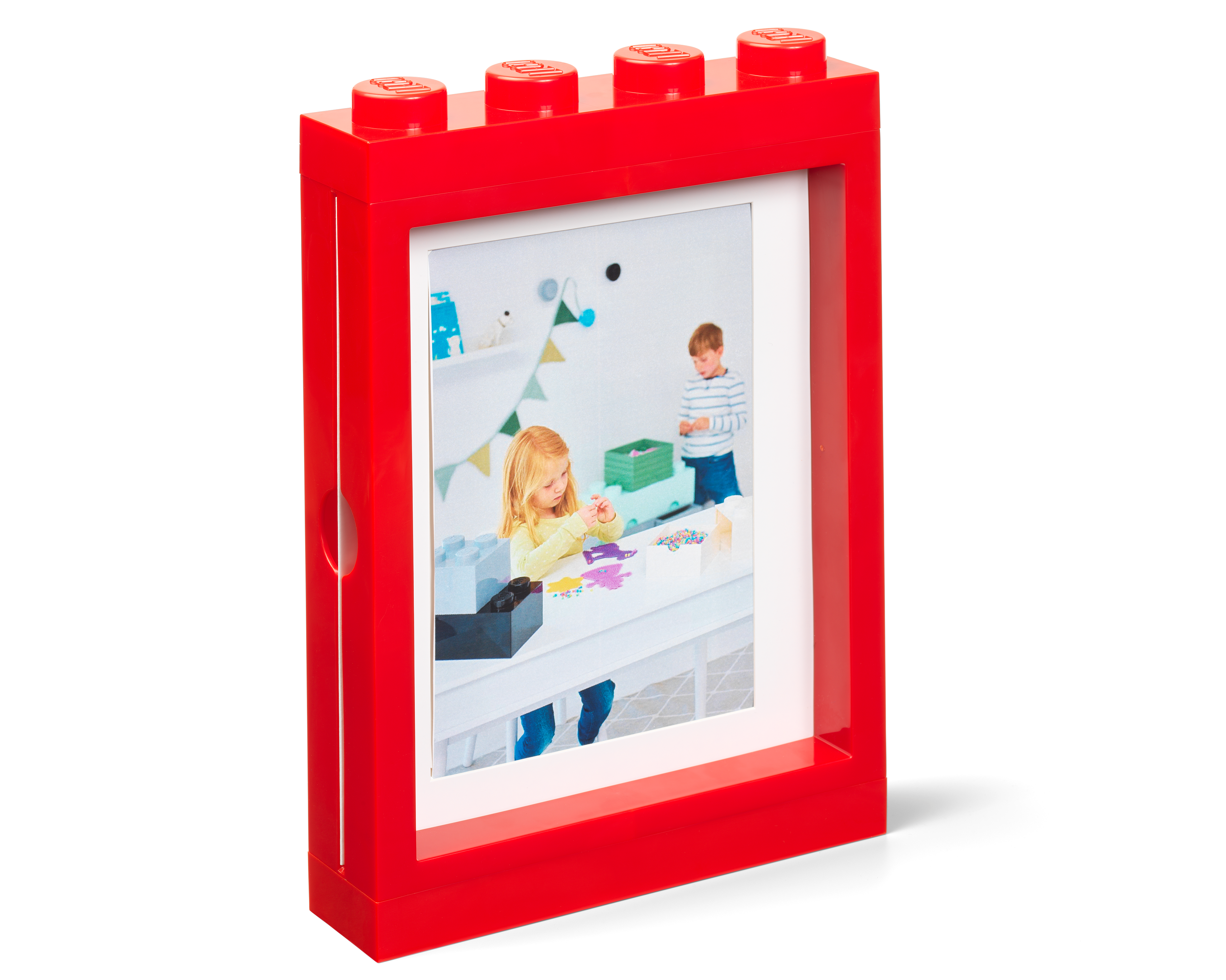 LEGO® Bilderrahmen mit 4 Noppen auf der oberen Leiste. Bilder lassen sich einschieben und sitzen dann sicher im Rahmen.