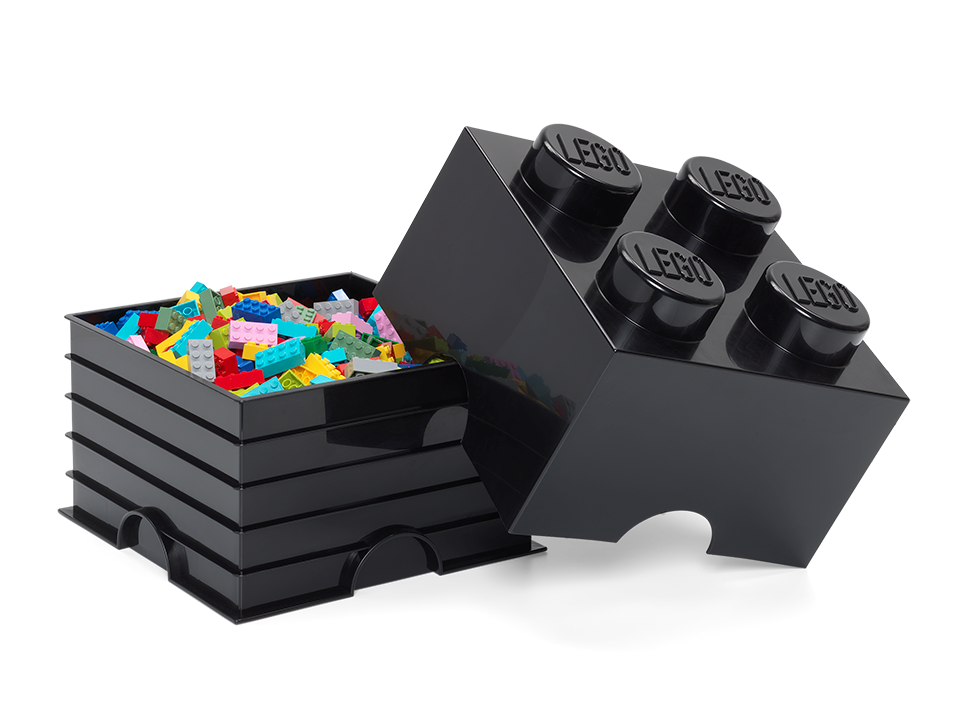 Genau wie ein LEGO® Stein: Mithilfe der 4 großen LEGO Noppen oben auf der Box lassen sich die Steine mühelos stapeln und zu einem Aufbewahrungssystem zusammenstecken.