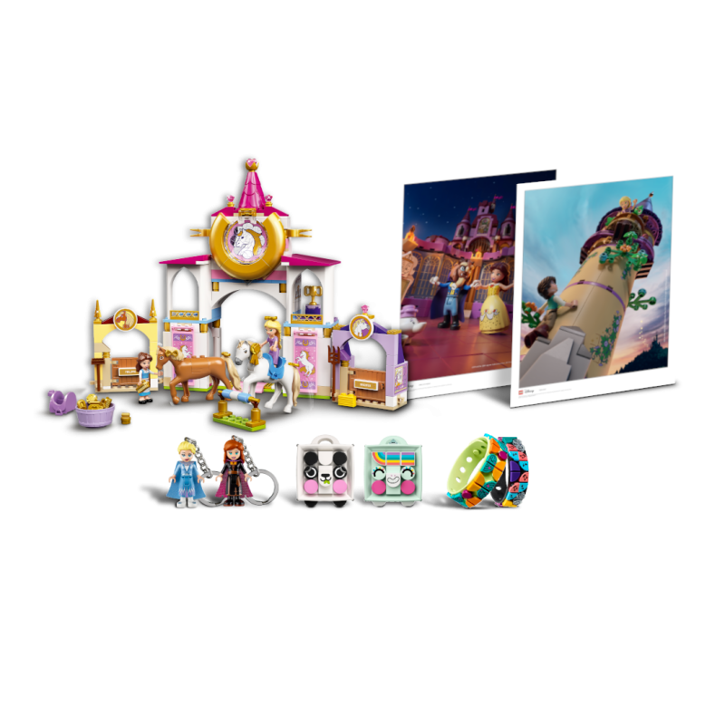 Dieses ultimative Paket lässt Disney Princess Fans ab 6 Jahren wunderbar miteinander spielen und gemeinsame Abenteuer darstellen. Beinhaltet das LEGO® ǀ Disney Bau- und Spielset „Belles und Rapunzels königliche Ställe“, die LEGO ǀ Disney Schlüsselanhänger mit Elsa und Anna sowie die LEGO DOTS Sets „Taschenanhänger Einhorn“, „Taschenanhänger Panda“, „Kaktus Armband“ und „Musik Armband“. 2 Kunstdrucke in limitierter Auflage, die Belle und Rapunzel darstellen, komplettieren das Paket! Hier regieren Freundschaft, Freundlichkeit und Kreativität!