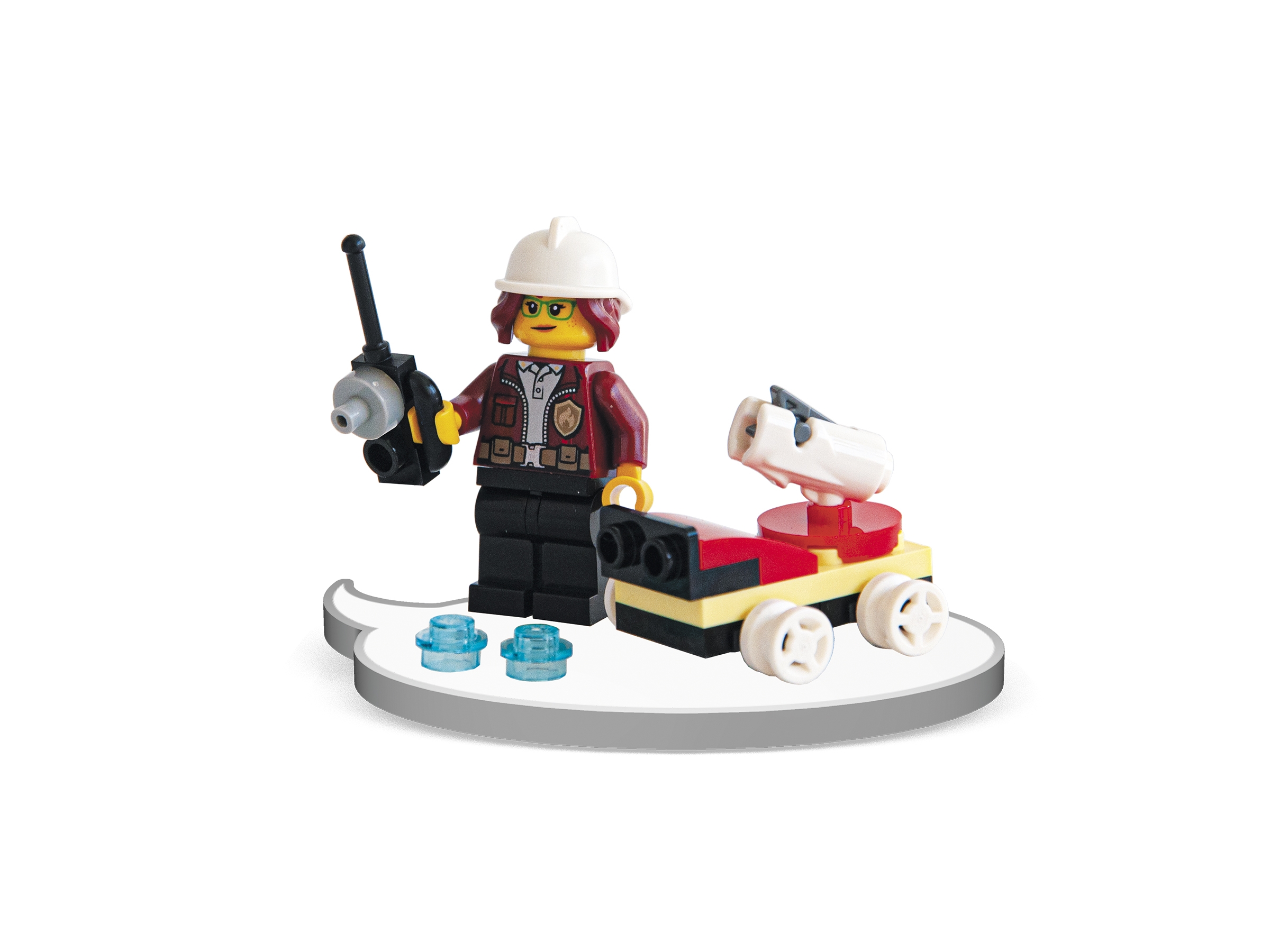 Mit Spielzeug für coole Rollenspiele: Die Minifigur Freya McCloud und der baubare Löschroboter lassen dein Kind die Geschichten aus dem Buch und der TV-Serie „LEGO® City – Abenteuer“ darstellen