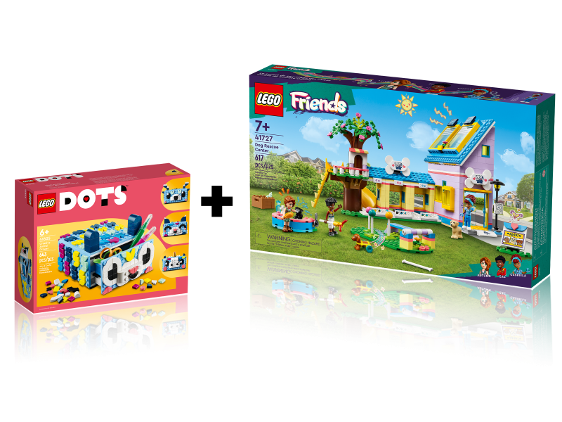 Tierliebe Kinder können mit diesem faszinierenden Paket besonders kreativ werden, denn es besteht aus der LEGO® DOTS Tier-Kreativbox mit Schubfach und dem LEGO Friends Hunderettungszentrum. Schau dir an, wie dein Kind seiner Fantasie freien Lauf lässt, wenn es die bunten Steinchen benutzt, um die DOTS Box mit seinem Lieblingstier oder einem anderen coolen Design zu verzieren. Anschließend kann dein Kind auch noch das Hunderettungszentrum für weitere spannende Abenteuer bauen. Das Set beinhaltetjede Menge Tierpflegeutensilien. Und da das Modell aus Modulen aufgebaut ist, kann man den Grundriss des Gebäudes nach Herzenslust umgestalten.