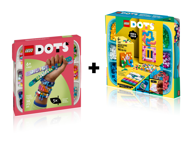 Kinder ab 6 Jahren werden von den vielen kreativen Möglichkeiten begeistert sein, die dieses LEGO® DOTS Mega-Paket zu bieten hat. Gleich 2 Sets – das Kreativ-Aufkleber Set und das Armbanddesign Kreativset – garantieren größtes kreatives Vergnügen. 5 verstellbare Armbänder, 5 Aufkleber sowie mehr als 800 Steinchen, darunter auch 30 Steinchen mit zufälligen Motiven und 12 durchscheinende Anhänger, lassen dein Kind kreativ werden. Fantasievoll gestaltete Accessoires zum Tragen und Aufkleben zeigen, wofür das Herz deines Kindes schlägt.