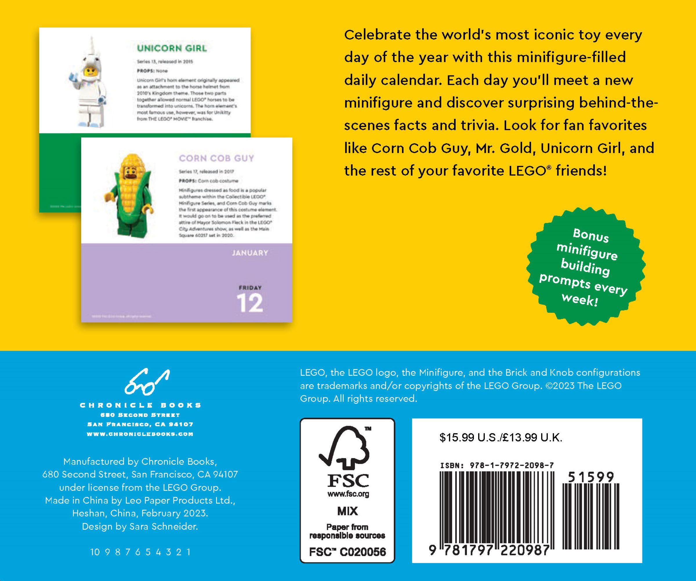 Geschenk für LEGO® Fans jeden Alters: Dieser Minifigur-Kalender präsentiert Bilder sowie jede Menge Infos über die Geschichte und Herstellung der jeweils dargestellten Minifigur. Eine Bauaufgabe zu jeder Minifigur regt die Fantasie an