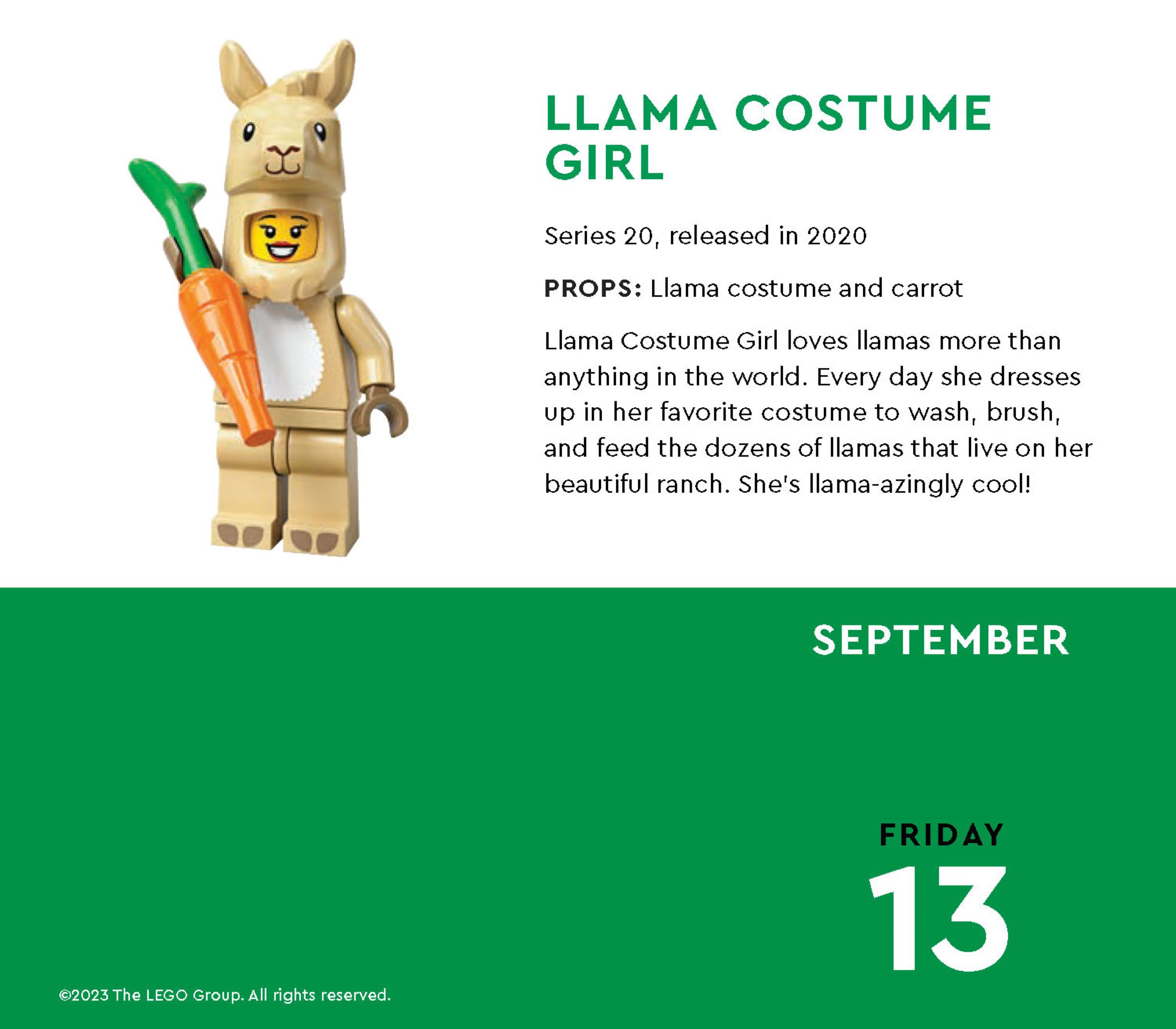 LEGO® Fans jeden Alters können sich auf eine tägliche Dosis Minifigur-Magie freuen! Der Farbkalender 2024 präsentiert jeden Tag eine andere Minifigur mit jeder Menge Infos über ihre Geschichte und ihre Herstellung. Darüber hinaus wird deine Fantasie durch eine Bauaufgabe angeregt, die mit der jeweiligen Minifigur zusammenhängt.