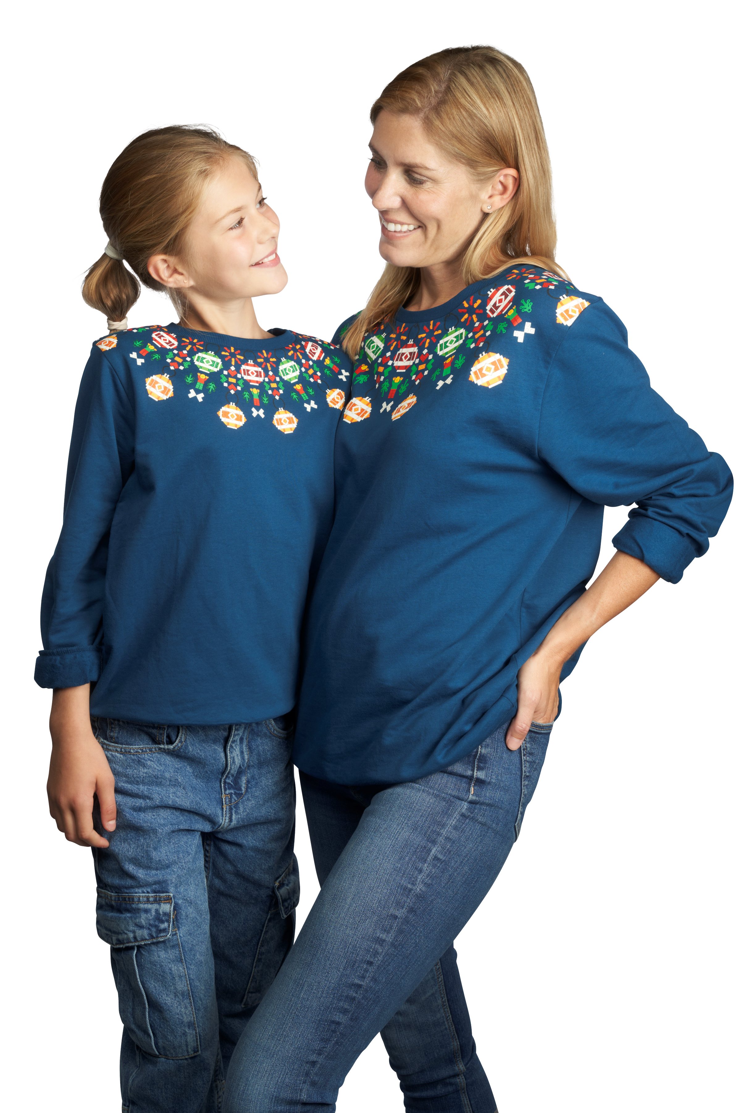 Feiere den legendären LEGO® Stein mit diesem stylischen blauen LEGO Weihnachtssweatshirt für Kinder. 100 % Baumwolle bieten besten Tragekomfort. Die Schulterpartie ist vorne und hinten mit Weihnachtsschmuck und Kränzen aus LEGO Steinen verziert. Dieses coole, waschmaschinenfeste LEGO Unisex-Kleidungsstück ist eine tolle Geschenkidee für Kinder und in diversen Größen für 4- bis 12-Jährige erhältlich. Das abgebildete Model ist 1,28 m groß und trägt das Sweatshirt in der Größe 138/140 cm für 9- bis 10-Jährige.