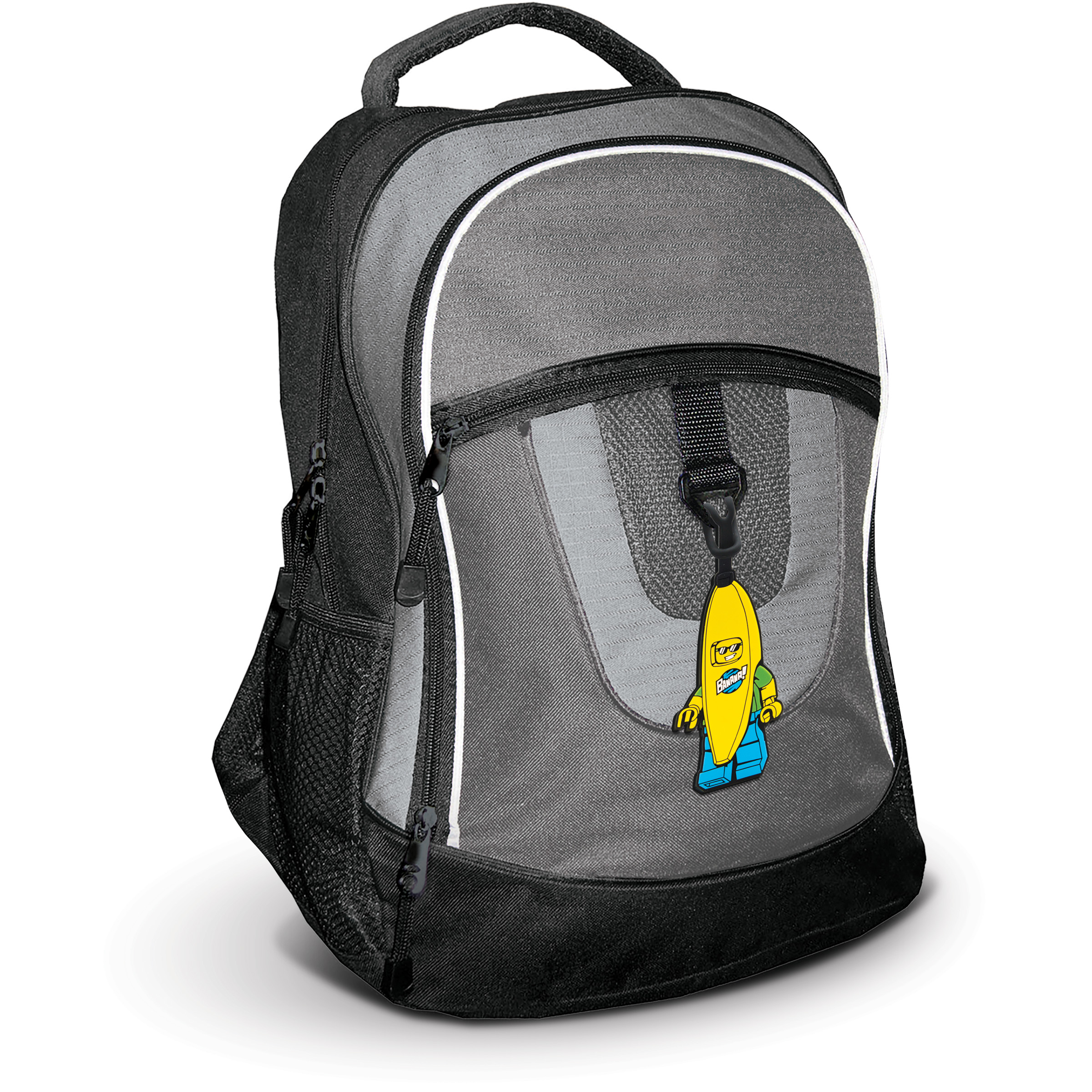 Taschenanhänger Bananen-Mann: Taschenanhänger aus 100 Prozent Silikon mit Abbildung der beliebten LEGO® Minifigur auf der Vorderseite und Feld auf der Rückseite, in das dein Kind seine Kontaktdaten eintragen kann