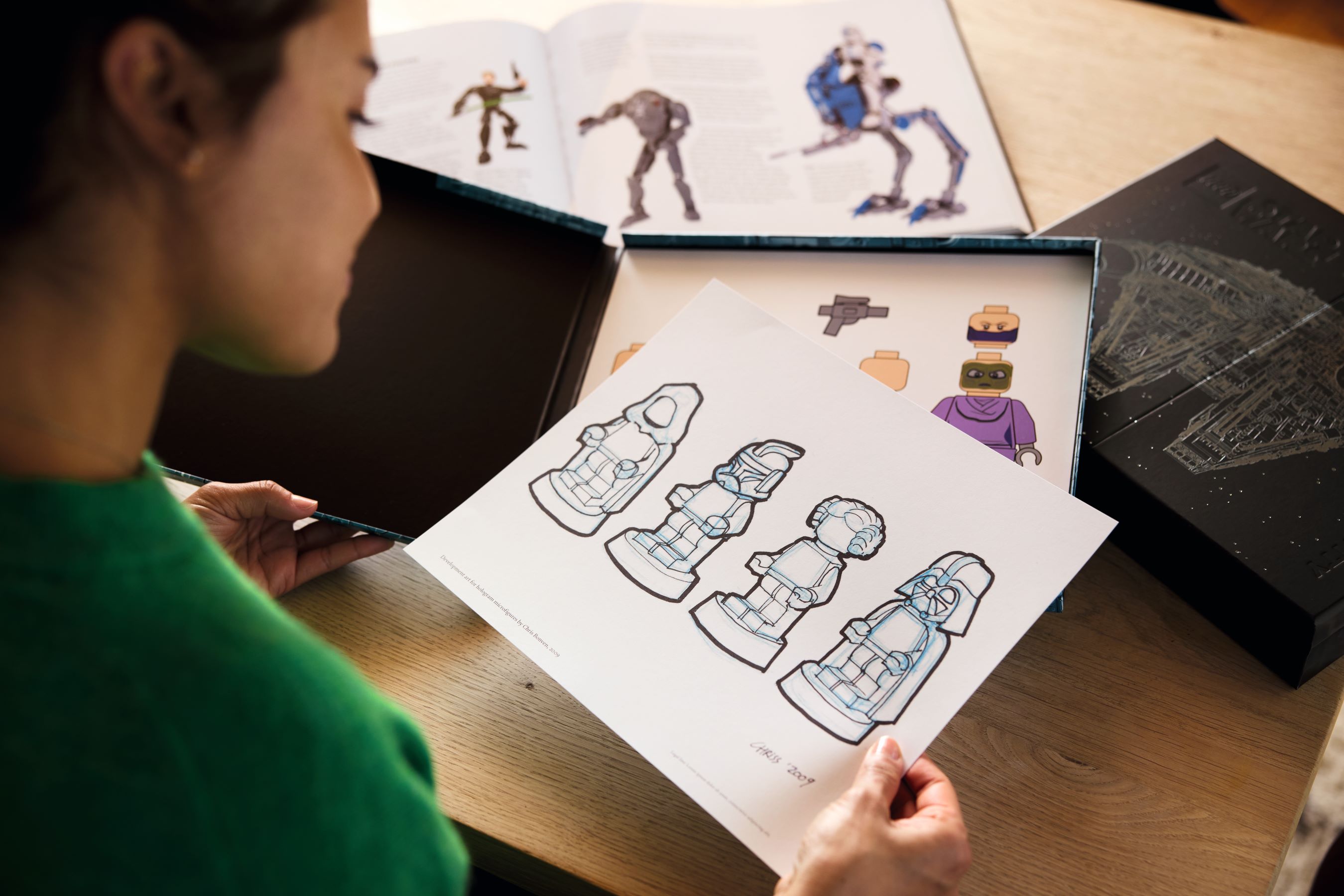 • Weitere Elemente in der Zeitkapsel: Eine Reproduktion einer seltenen Broschüre zur Spielwarenmesse 2010, der Entwurf der nie herausgebrachten LEGO® Star Wars™ Minifigur Zam Wesell (2020), ein Drehbuch für eine nie produzierte Animation und Ähnliches