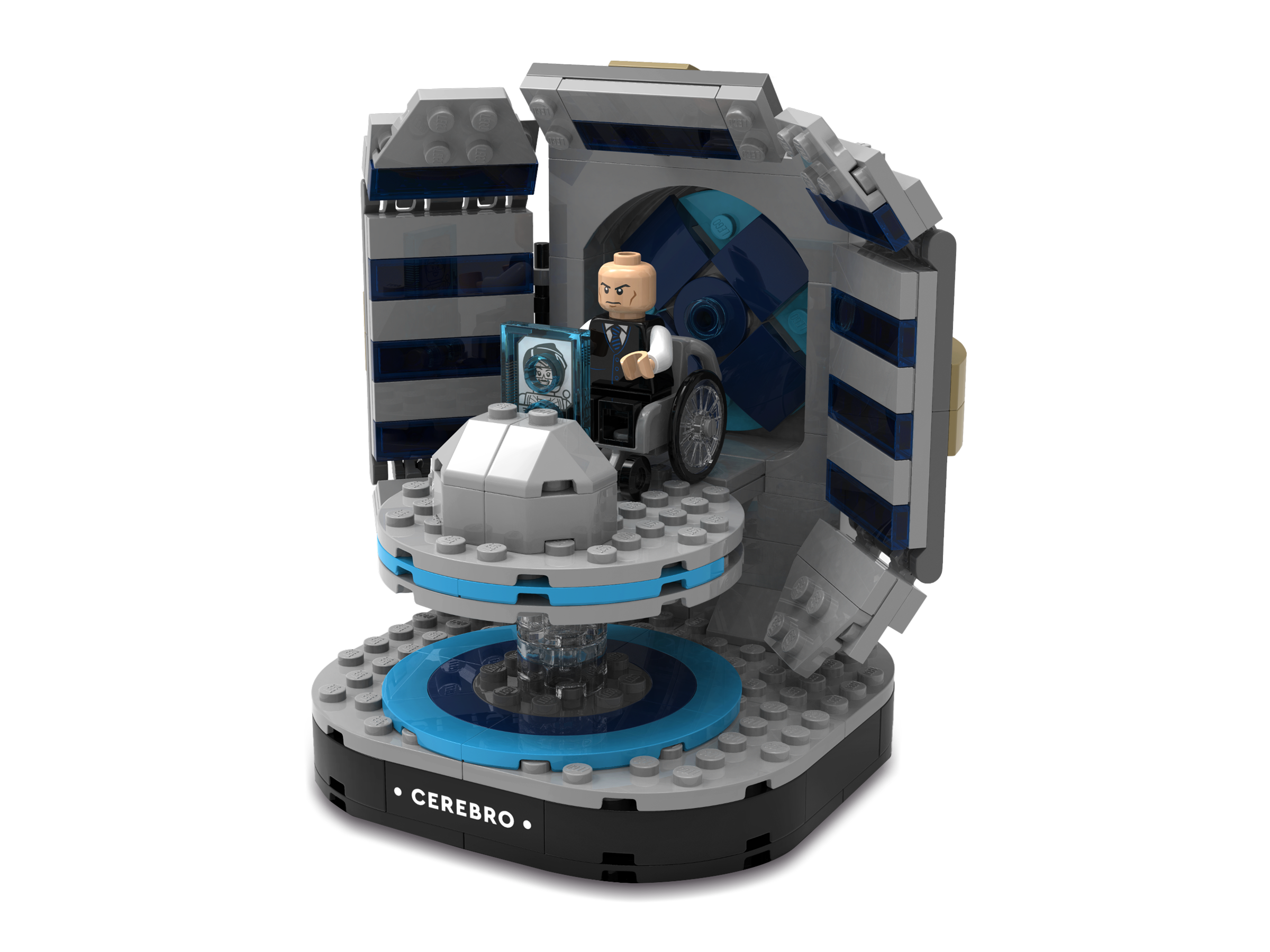 Fans der X-Men Filme aus den Marvel Studios können ihren eigenen Cerebro erschaffen, den legendären Mutantendetektor von Professor Xavier. Zu diesem baubaren LEGO® Modell gehören auch die Minifigur Professor Xavier im Rollstuhl, ein mit dem Schriftzug „Cerebro“ bedrucktes Element und ein durchsichtig-blaues Teil auf der Konsole, das den X-Men Charakter Jubilee darstellt. Dieses Bauspielzeug ist ein tolles Geschenk für Kinder ab 10 Jahren, die die X-Men Filme aus den Marvel Studios und LEGO Bauabenteuer lieben.