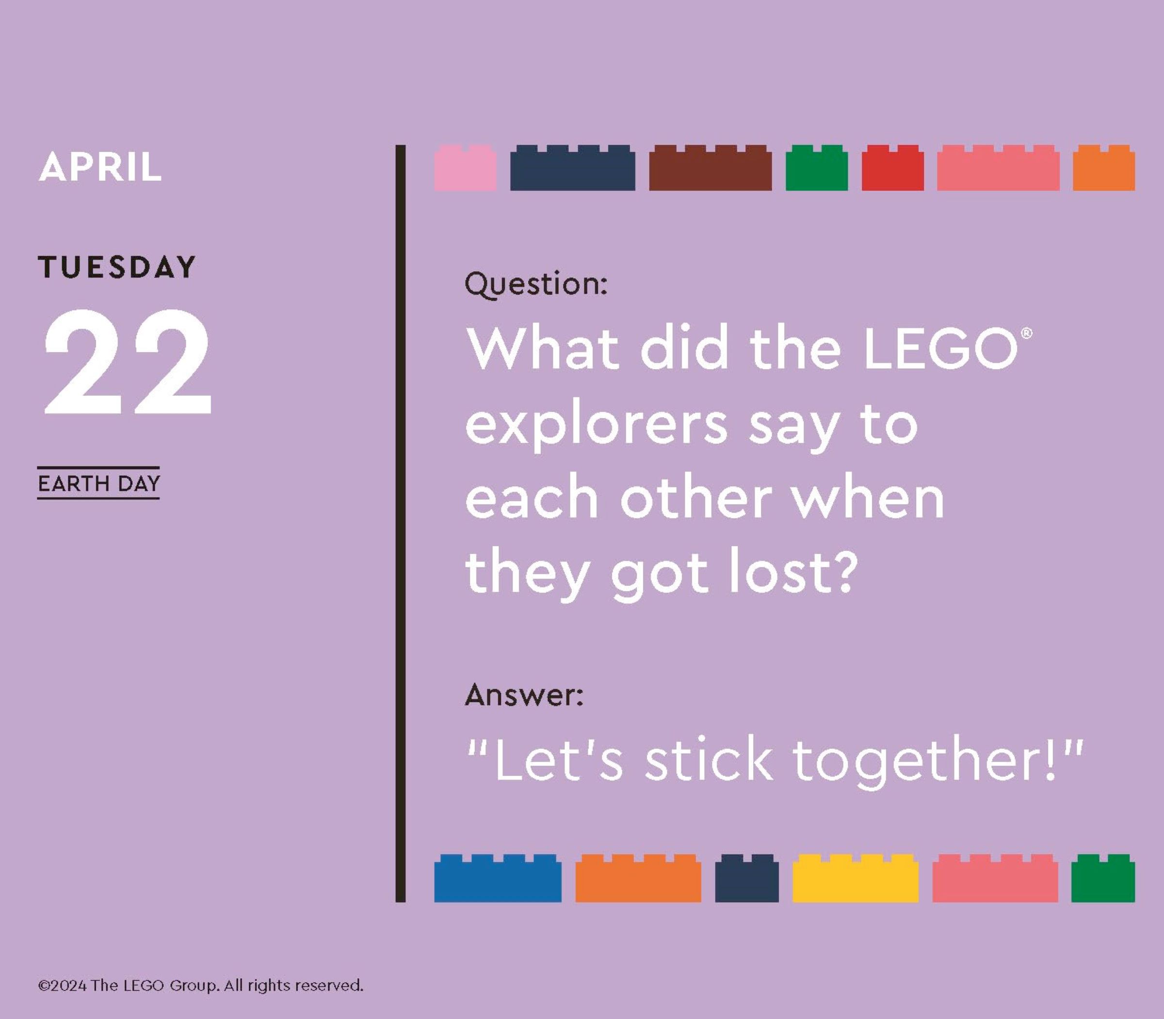 Ebenso witziger wie praktischer Kalender für die ganze Familie: Dieser Kalender fürLEGO® Fans jeden Alters bietet LEGO Spaß an 365 Tagen, über den die ganze Familie lachen kann