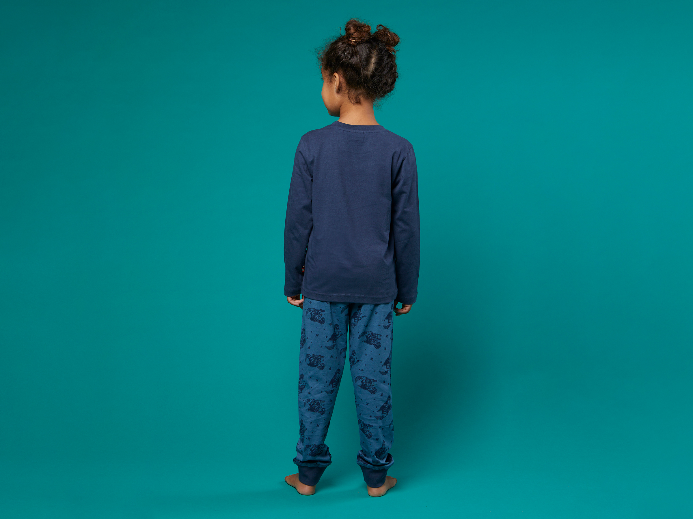 In diversen Kindergrößen erhältlich: Dieser Kinderschlafanzug aus 100 % Baumwolle ist waschmaschinenfest. Die Hose hat einen Gummibund und gerippte Knöchelbündchen