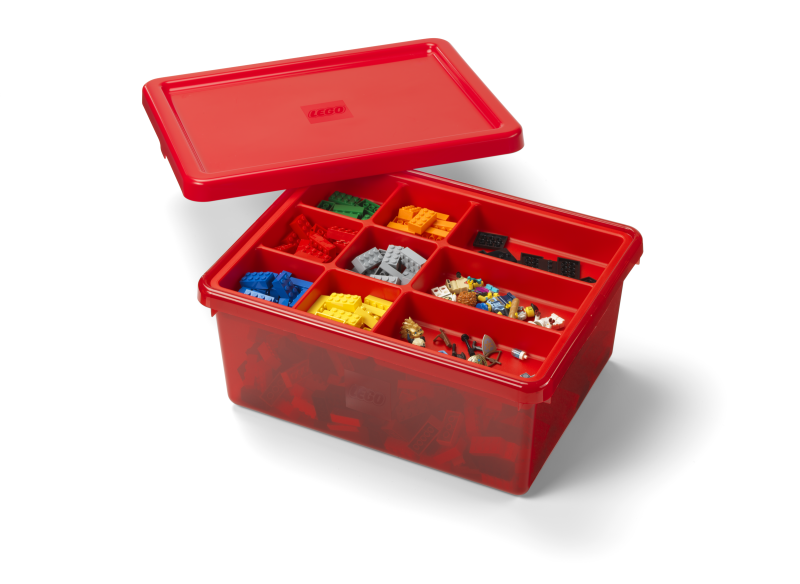 LEGO® Aufbewahrungsbox: Die LEGO Fächerbox in Rot ist ein überaus praktischer Behälter, in dem Kinder ihre LEGO Steine, Teile, Elemente und Minifiguren sicher aufbewahren können