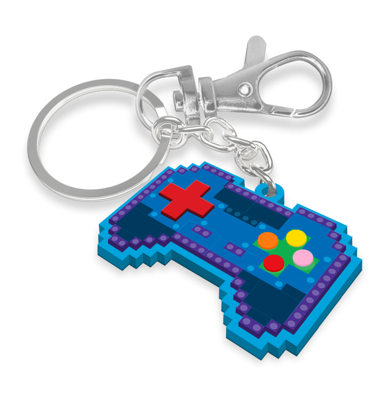 LEGO® GAMING-TASCHENANHÄNGER: Der coole blaue Videospiel-Controller mit rotem Steuerkreuz und 4 Knöpfen ist ein toller Farbtupfer für den Rucksack oder die Schultasche