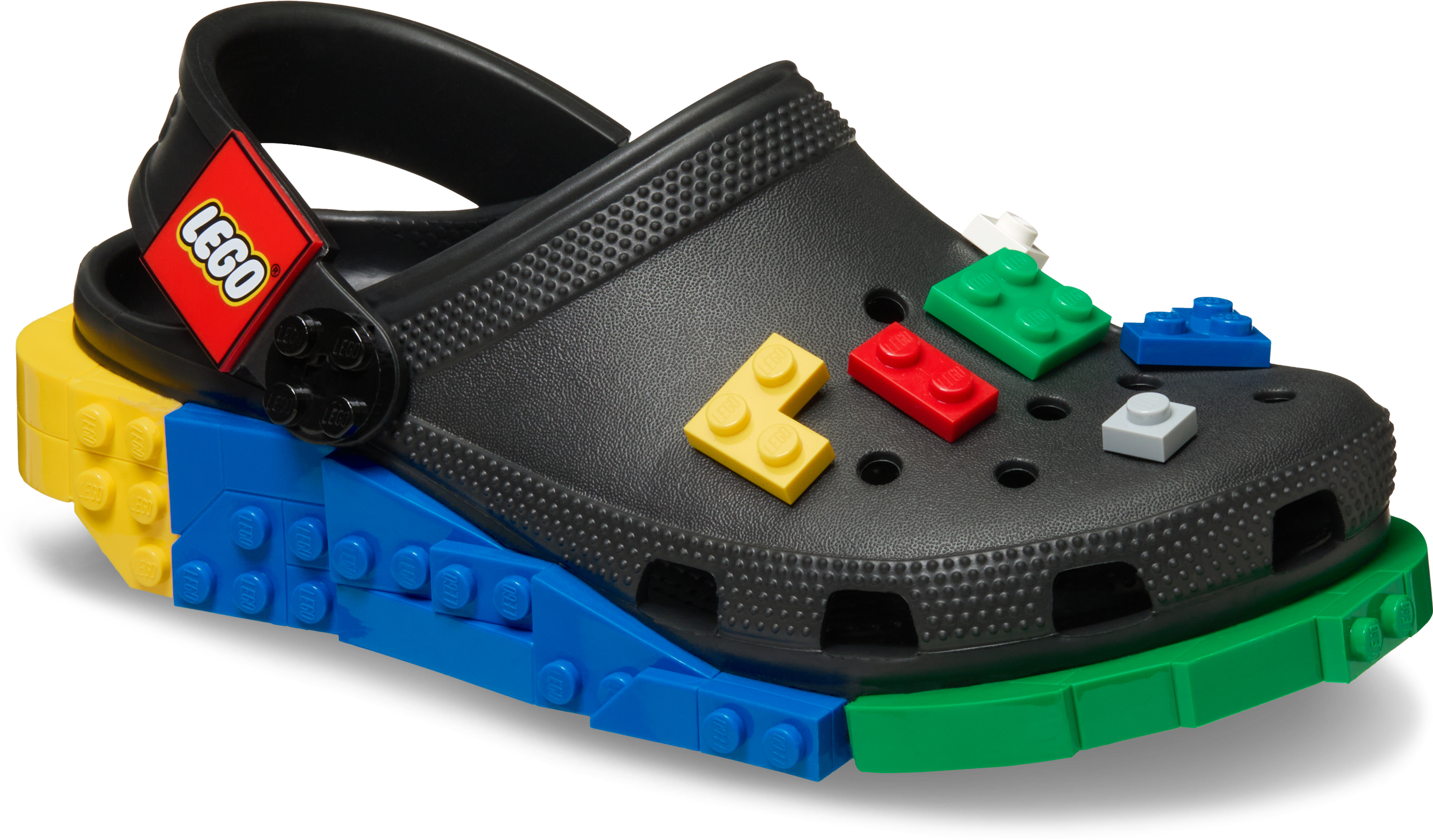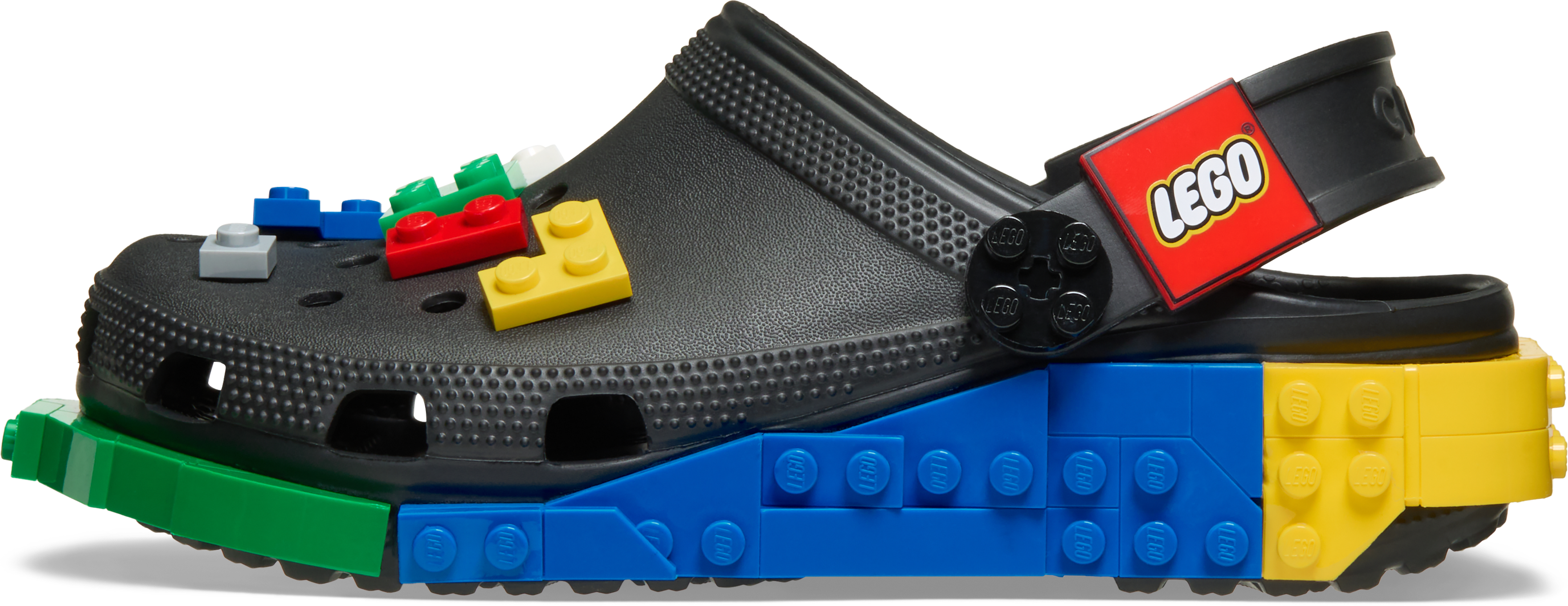 COOLE CLOGS: Die Oberseite und der Rand der Sohle können mit 12 LEGO® Stein Jibbitz™ Charms fantasievoll verziert werden. Und der umlegbare Halteriemen sorgt für einen sicheren Sitz