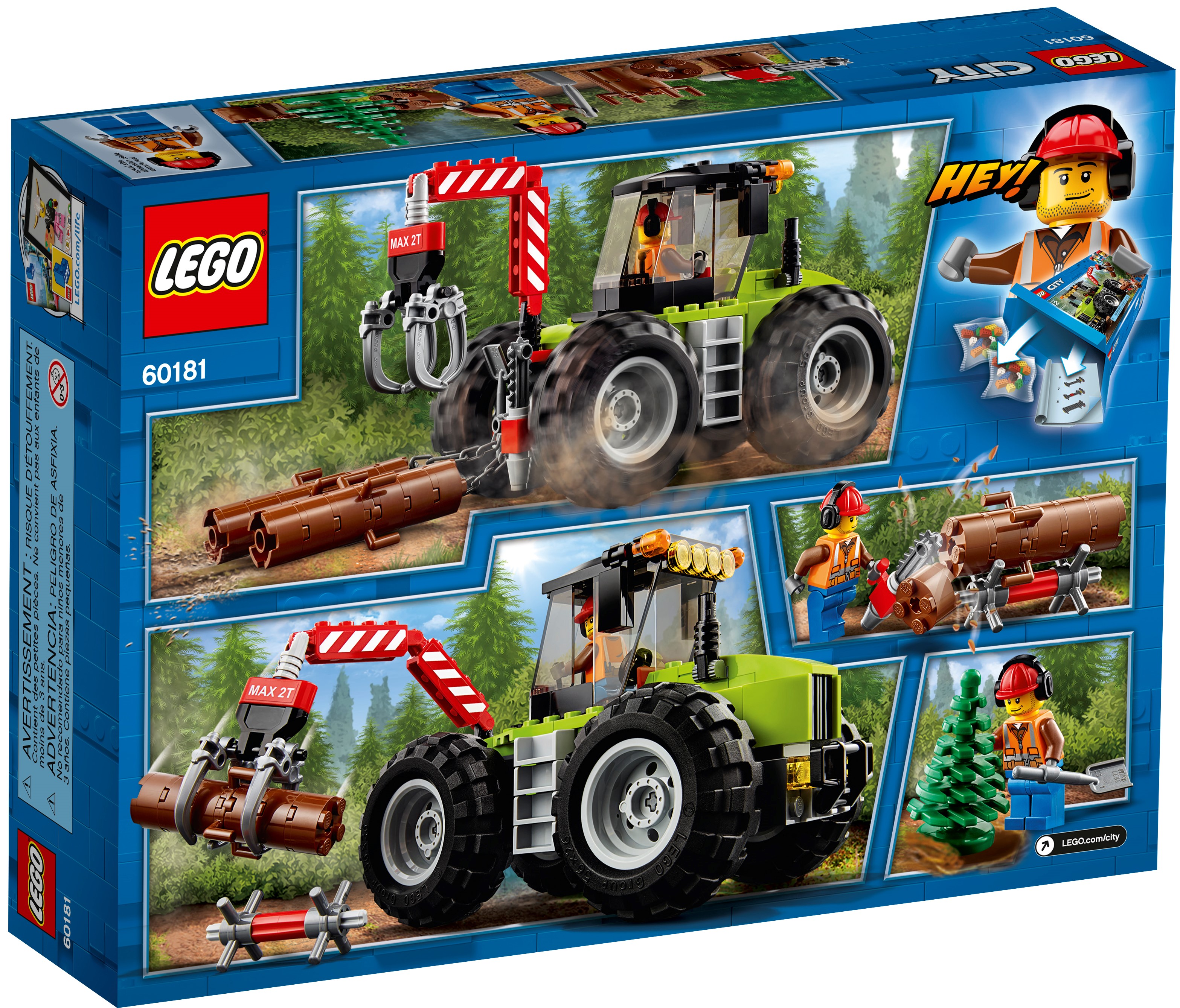 Arbeite mit dem LEGO® City Forsttraktor mit seinem beweglichen Ausleger und zu öffnendem Greifer und den massiven Rädern in der Natur. Mit kleinem Holzstand, 2 Ketten, 2 baubaren Baumstämmen, Tannenbäumchen, Kettensäge und Schaufel. Dieses tolle Kinderspielzeug enthält eine Minifigur.