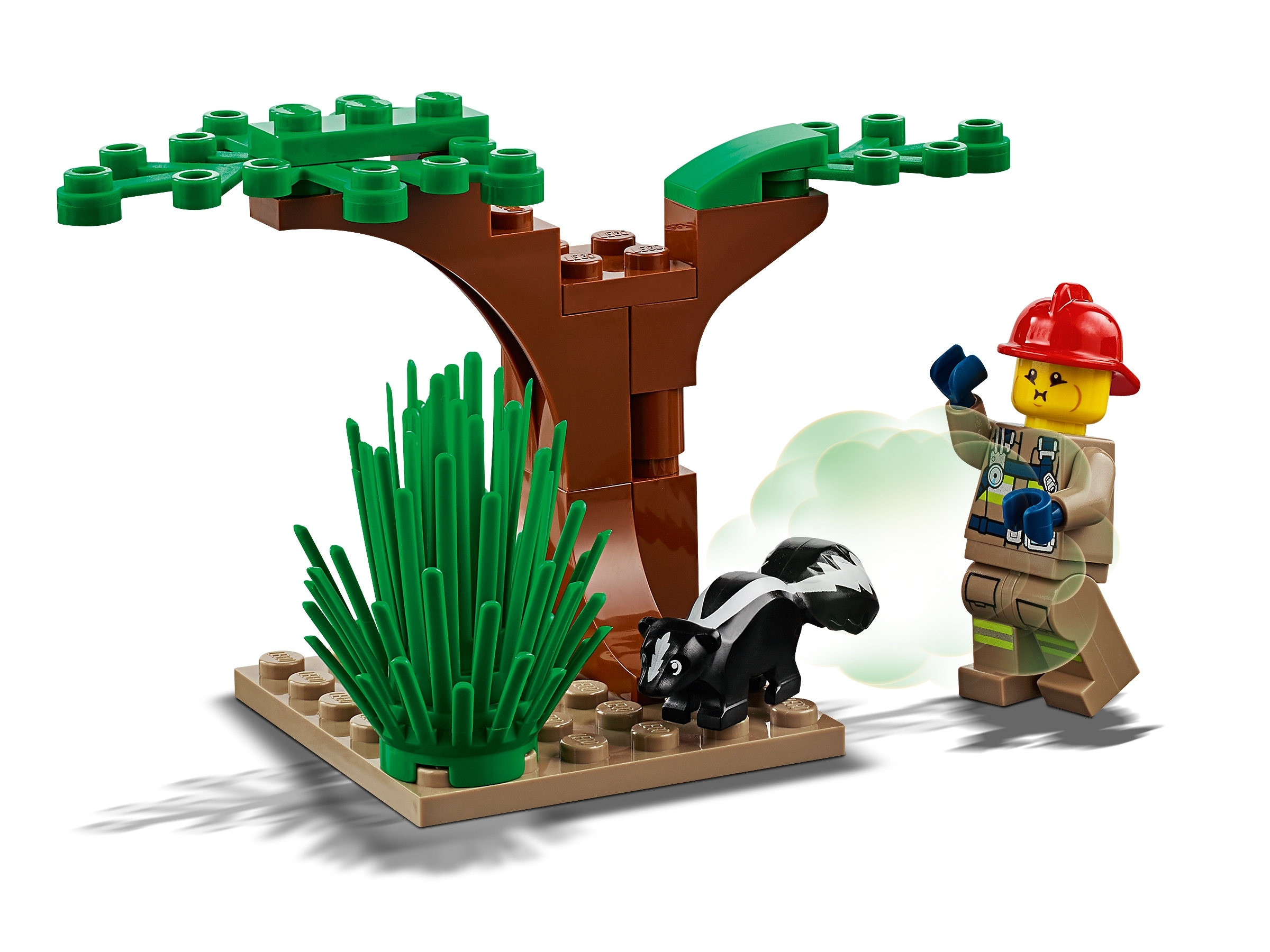 Enthält 3 LEGO® City Minifiguren: einen Piloten, 2 Feuerwehrmänner und eine Stinktierfigur.