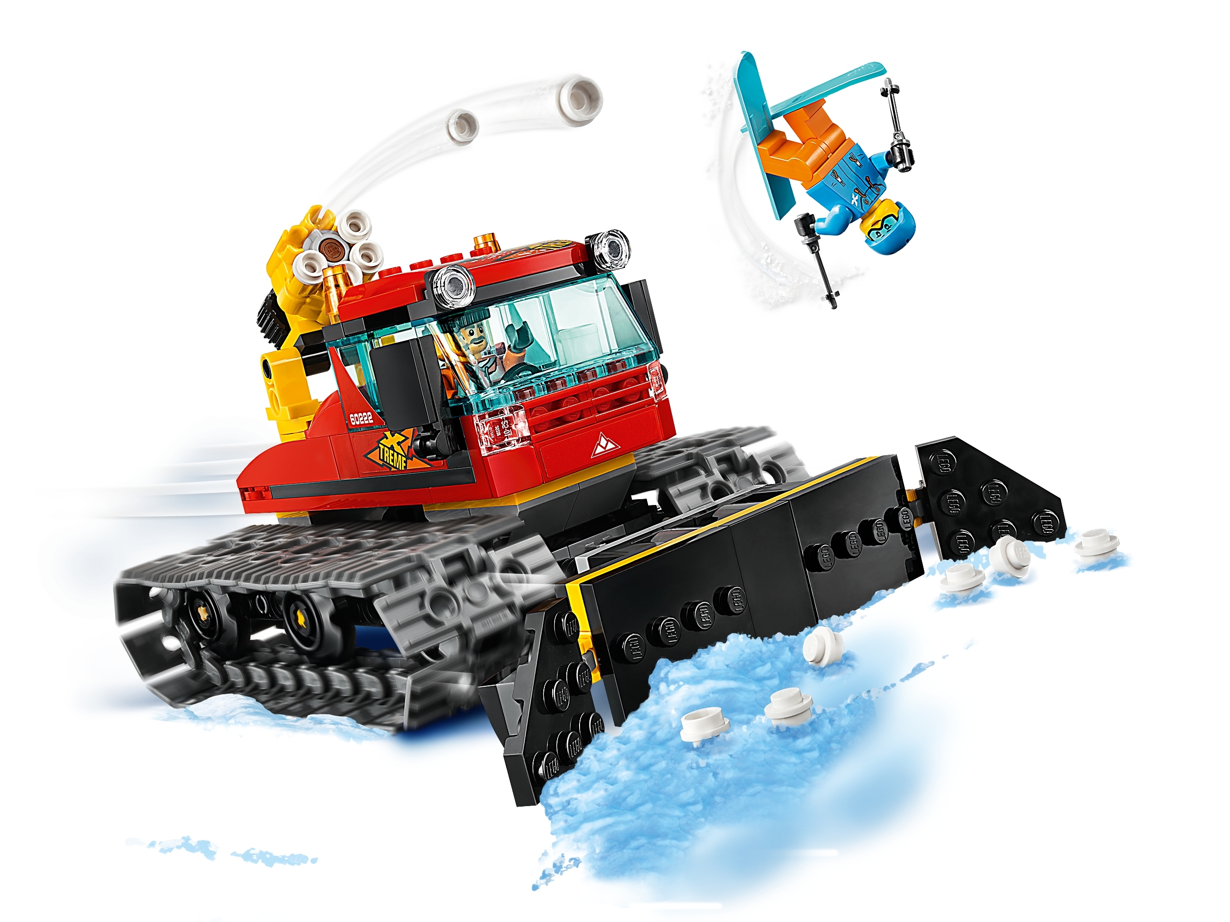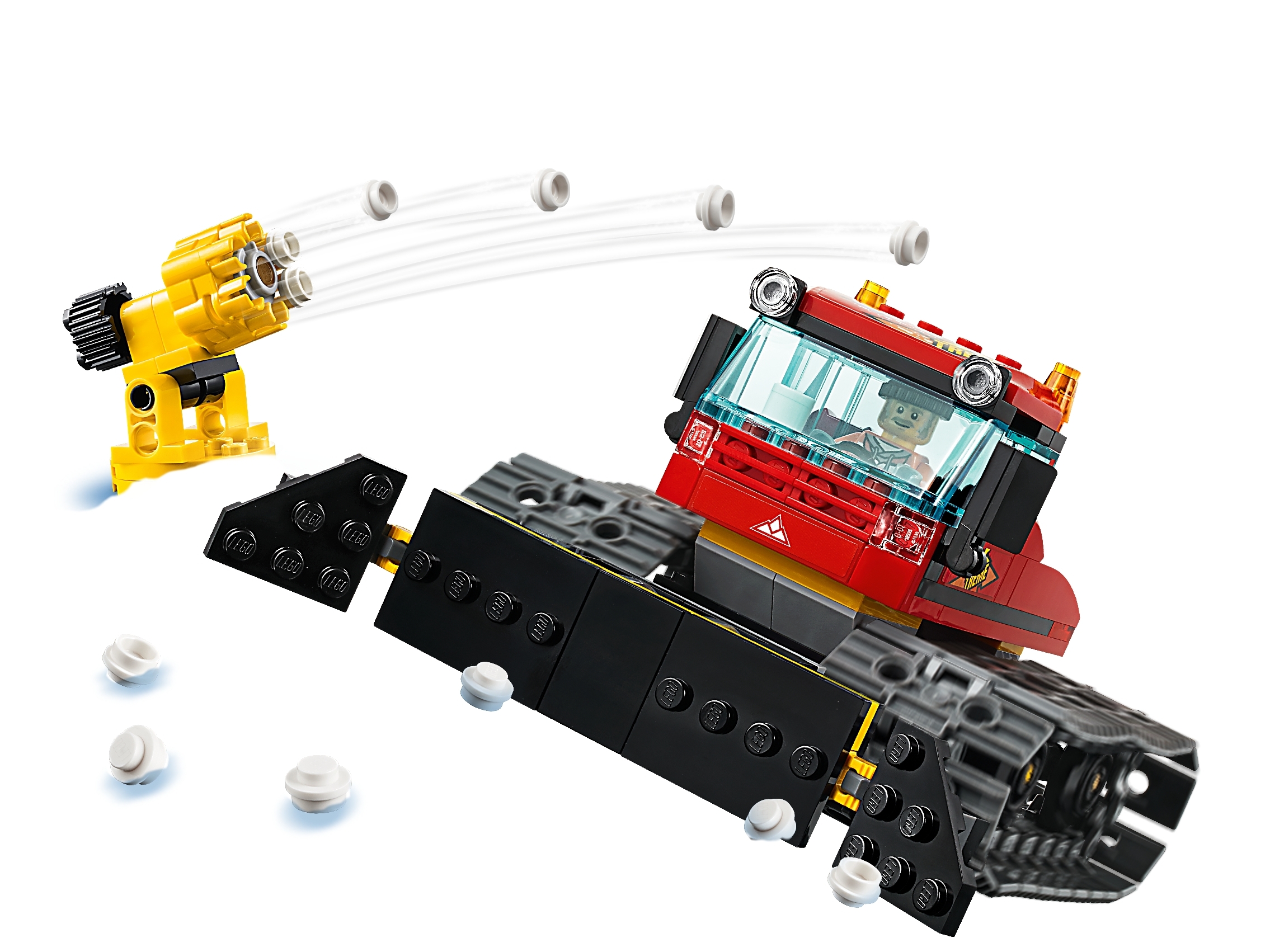 Enthält eine detailgetreue Pistenraupe mit Fahrerkabine zum Öffnen für die Minifigur, sich öffnendem Dach, robusten Ketten und einem großen Front-Schneeschild sowie eine schwenkbare Schneekanone mit sechs Noppen.