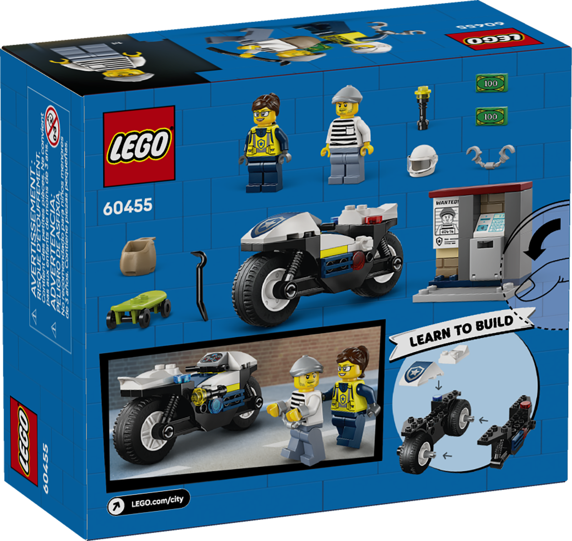 • Inhalt der Box: Alles, was Kinder brauchen, um ein Polizeimotorrad, ein Skateboard, einen Geldautomaten und 2 Minifiguren zu bauen. Ein Polizist und ein Skateboarder laden zu Rollenspielen ein