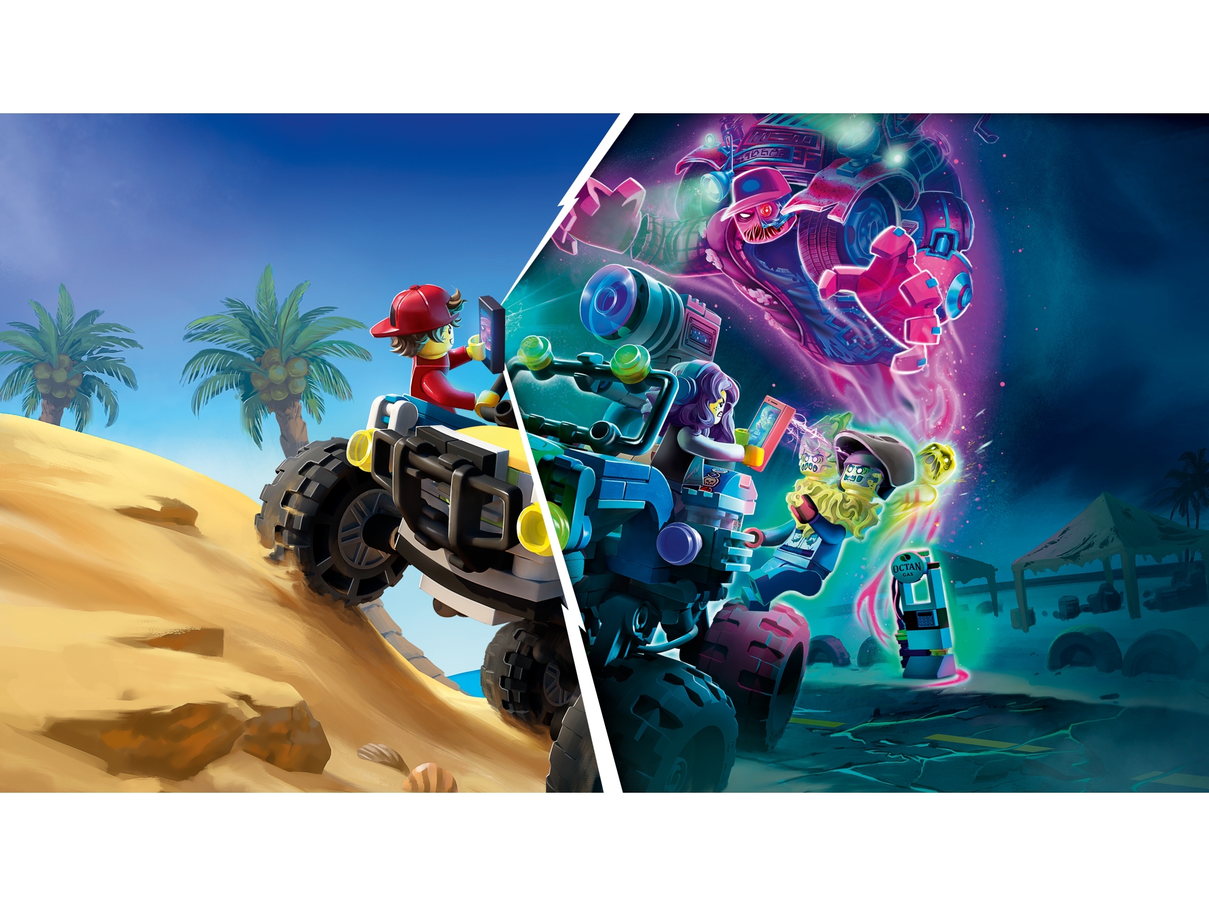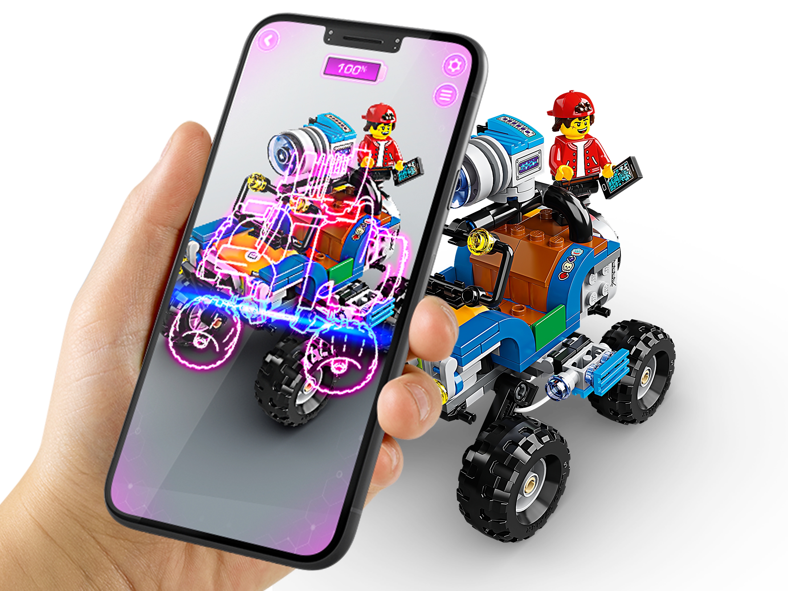 • Wird der LEGO® Spielzeug-Strandbuggy durch ein Smartphone oder ein Tablet mit der kostenlosen LEGO AR-App betrachtet wird, erscheint eine digitale Geisterwelt. Dort können Kinder Geheimnisse lüften, Geister jagen und sich mit Trucker Dale messen.