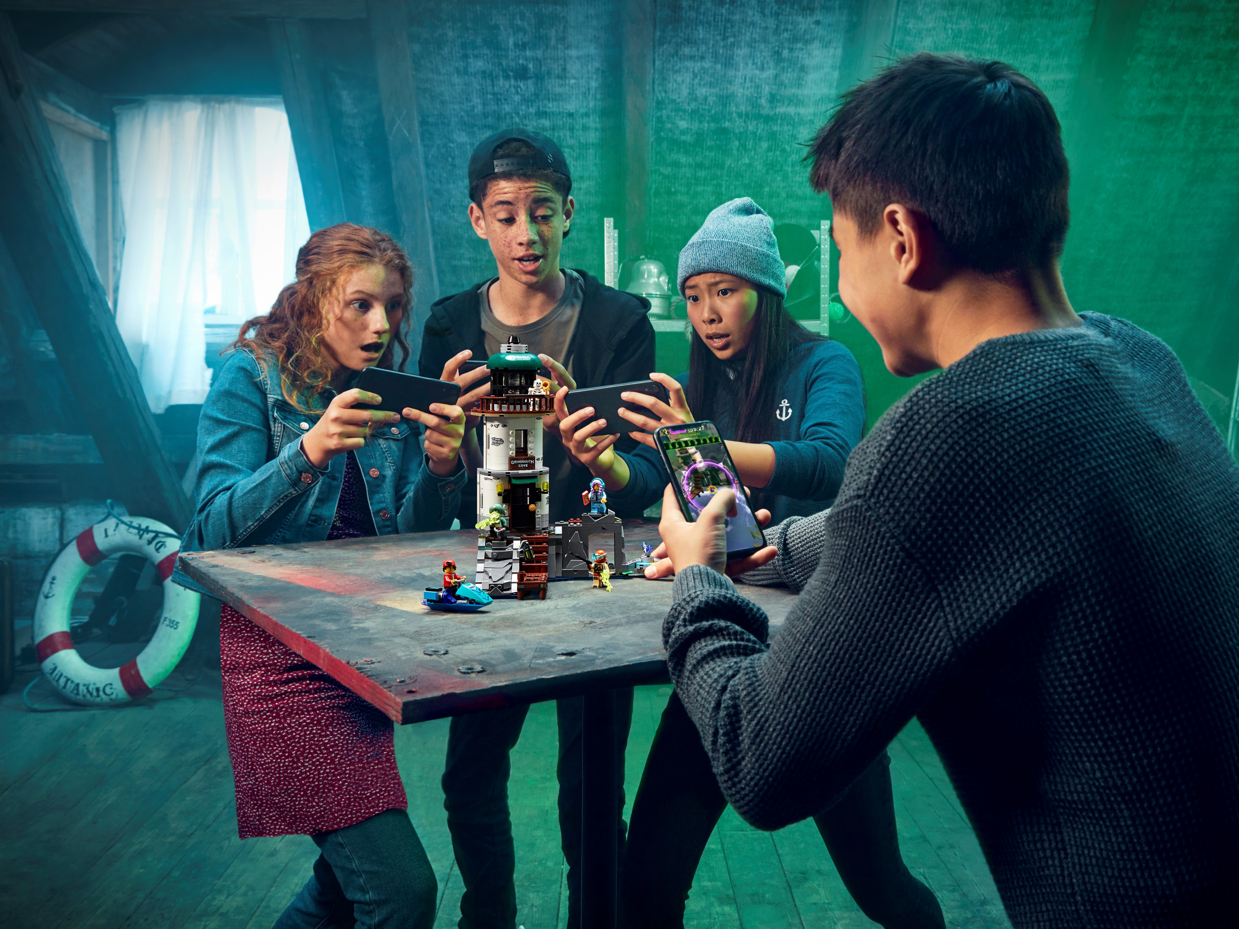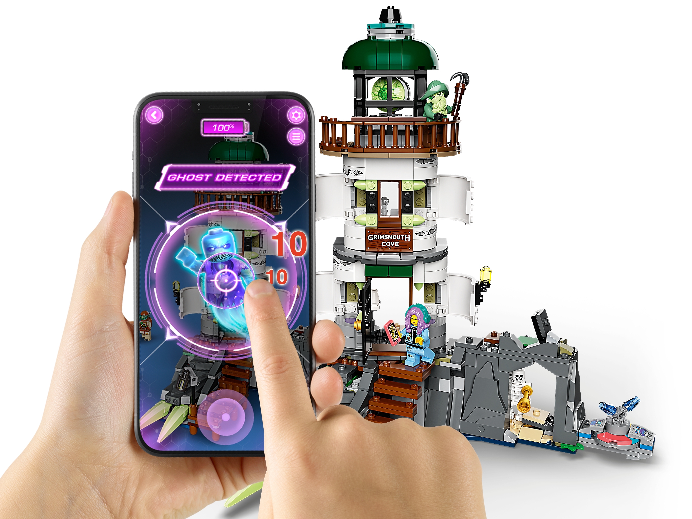 Wird der LEGO Leuchtturm durch ein Smartphone oder Tablet mit der kostenlosen LEGO Hidden Side AR-App betrachtet wird, offenbart sich eine digitale Spielwelt. Kinder können dann Geister jagen, Geheimnisse lüften und sich mit Joe Ishmael messen.