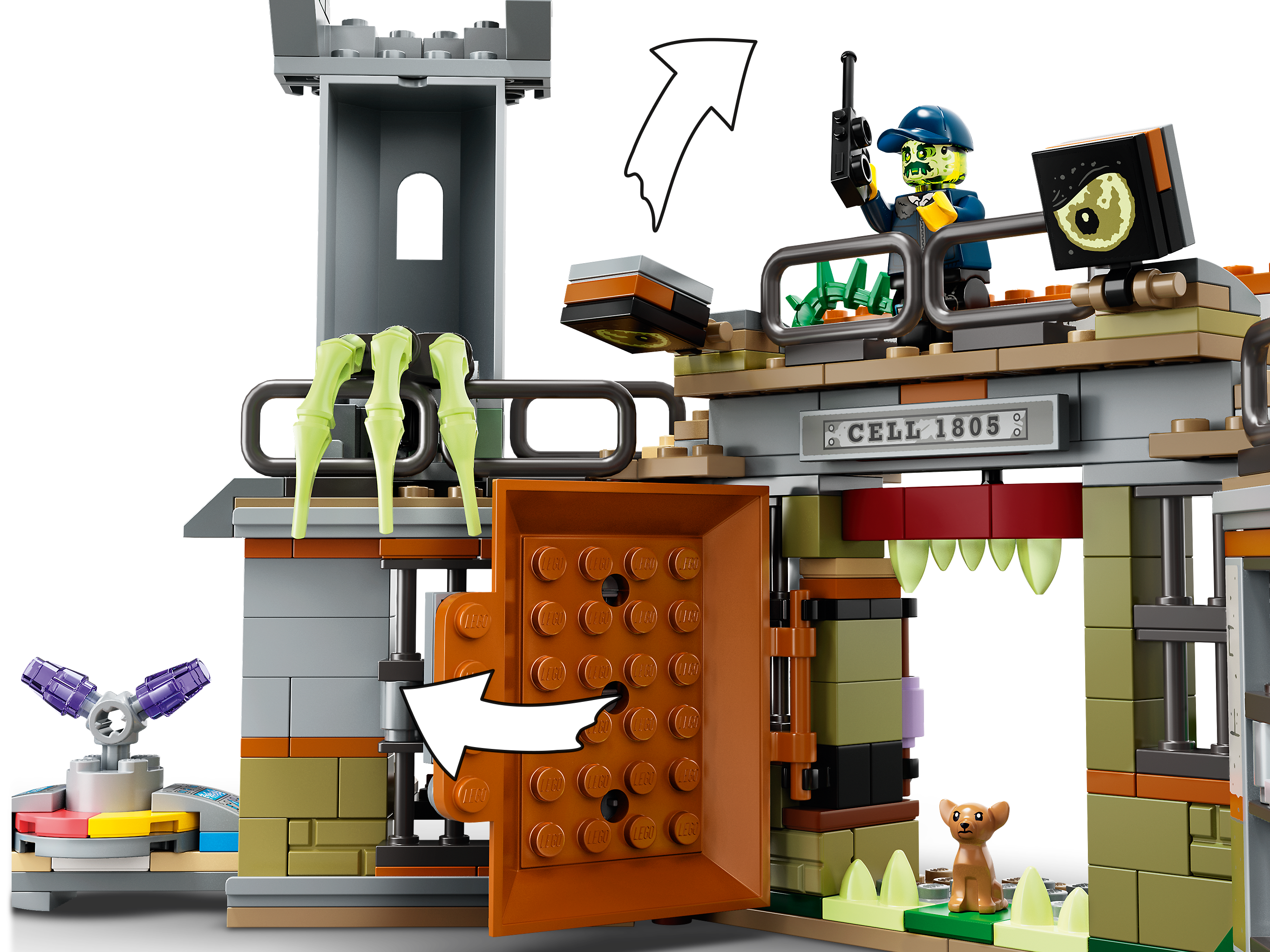 Dieses Hidden Side™ AR-Spielset enthält ein interaktives Gefängnis-Modell mit „Spukmodus“-Funktion sowie Jack, Rami, El Fuego und Nate Lockem als Minifiguren und die Hundefiguren Spencer und Maximus.