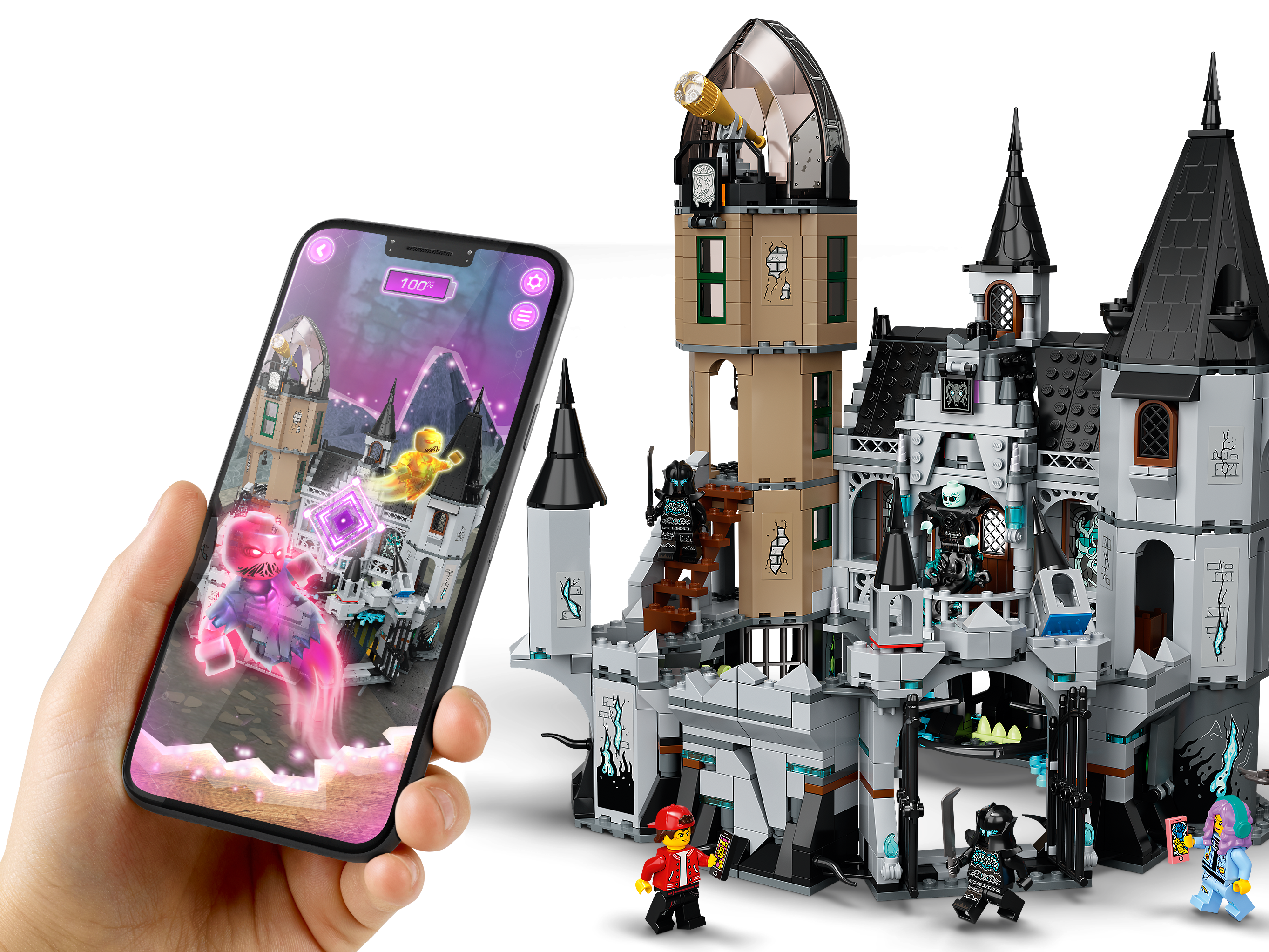 Fans von VR-Erlebnissen und Videospielen werden das faszinierende LEGO® Hidden Side™ Universum lieben, denn dort verschmelzen die echte und die digitale Spielwelt zu einem unfassbaren AR-Spielerlebnis – im Einzel- oder Mehrspielermodus. Das LEGO® Hidden Side™ Spielset „Geheimnisvolle Burg“ (70437) kombiniert ein LEGO® Baumodell mit einer App, sodass die Interaktion mit dem Modell Ereignisse in einer digitalen Spielwelt auslöst.