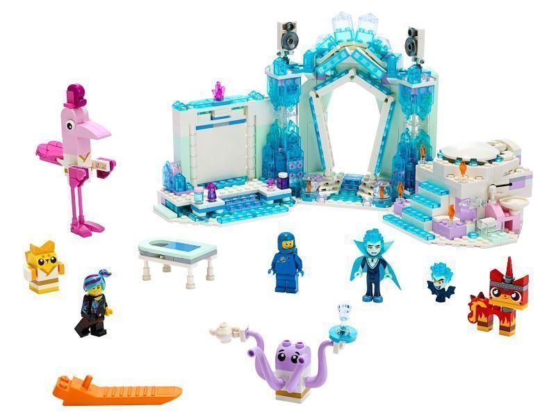 Im THE LEGO® MOVIE 2™ Bauset „Schimmerndes Glitzer-Spa“ (70837) können Kinder in die Rolle der ausgewaschenen Wyldstyle, vom LEGO Astronauten Benny oder anderen farbenfrohen Figuren schlüpfen! Das Spa-Spielset steckt voller Überraschungen und regt die Fantasie von Kindern an – mit einer beweglichen Wand mit Hebelbetätigung zum Nachspielen von Balthazars Verwandlung in eine Vampirfledermaus und einem Whirlpool mit Falltürfunktion. Fans von THE LEGO MOVIE 2™ werden es lieben, ihre Lieblingsszenen mit 2 Minifiguren, einer Spielfigur und 5 Figuren zum Zusammenbauen nachzuspielen – einschließlich von LEGO Einhorn Kitty als Beruhige-dich-Kitty, einer Massageliege und tollen Zubehörteilen.