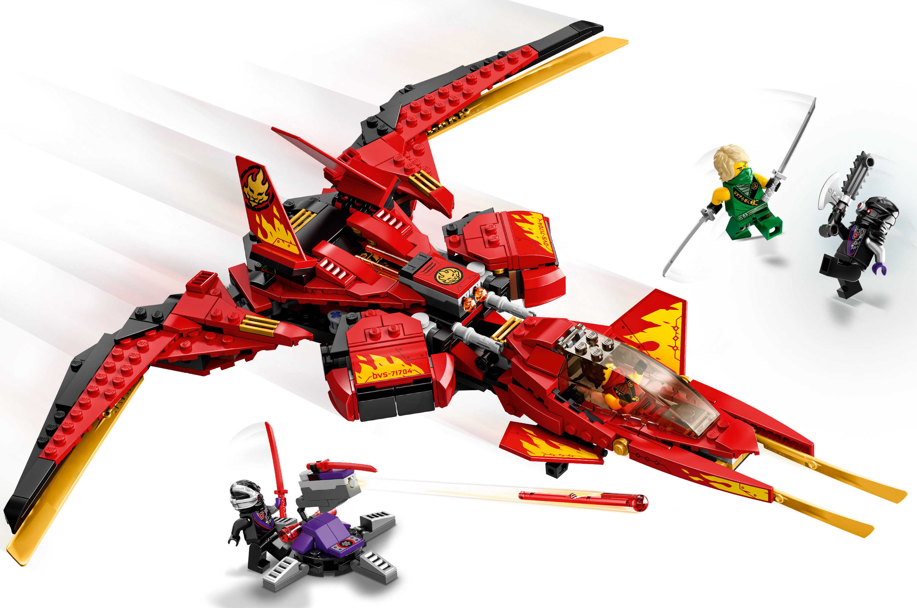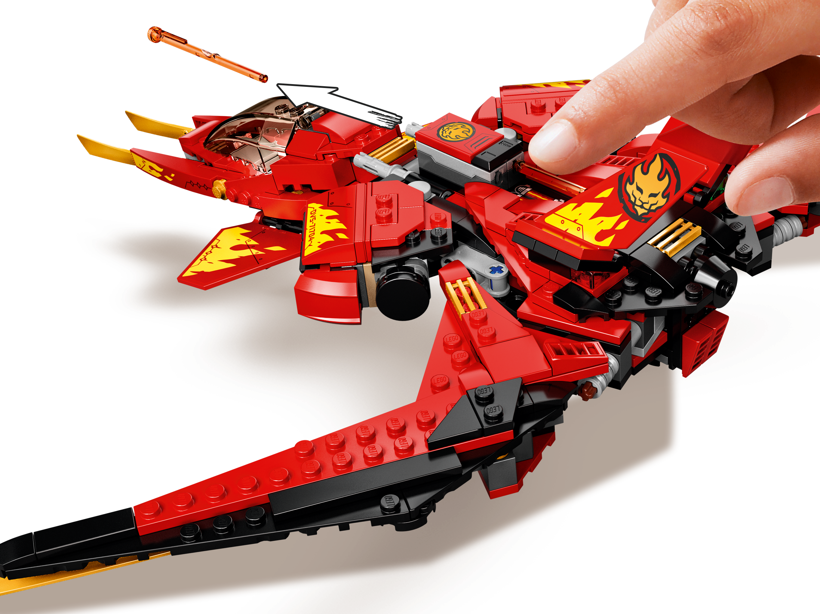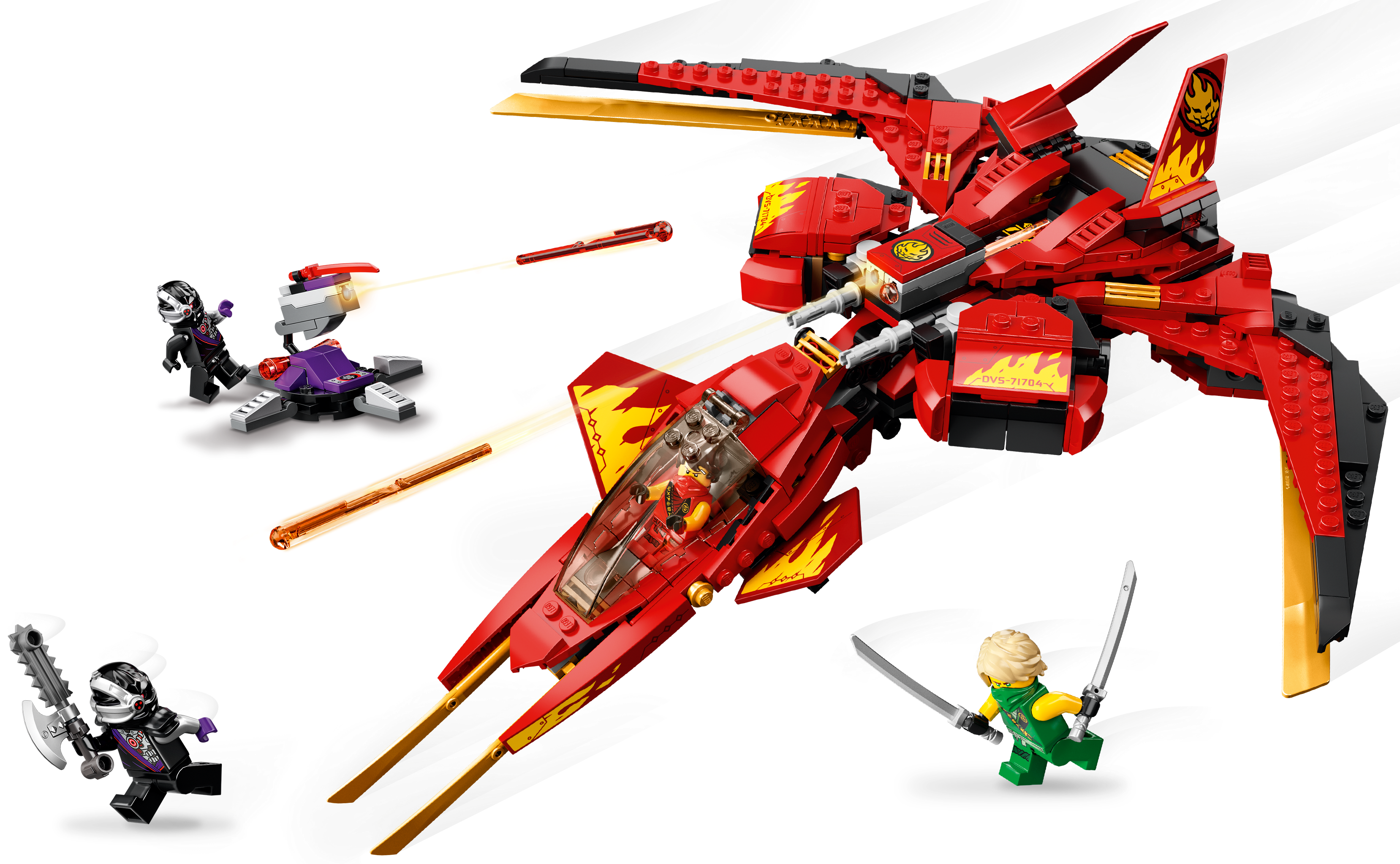 Eine überarbeitete Version von „Kais Super-Jet“ aus der NINJAGO® TV-Serie „Meister des Spinjitzu“ mit Schwenkflügeln, verstellbarem Cockpit und zwei Shootern mit Federmechanismus. Wenn das Modell nicht gerade für spannende Action benötigt wird, können die Kinder es als Schaustück im Kinderzimmer aufstellen.